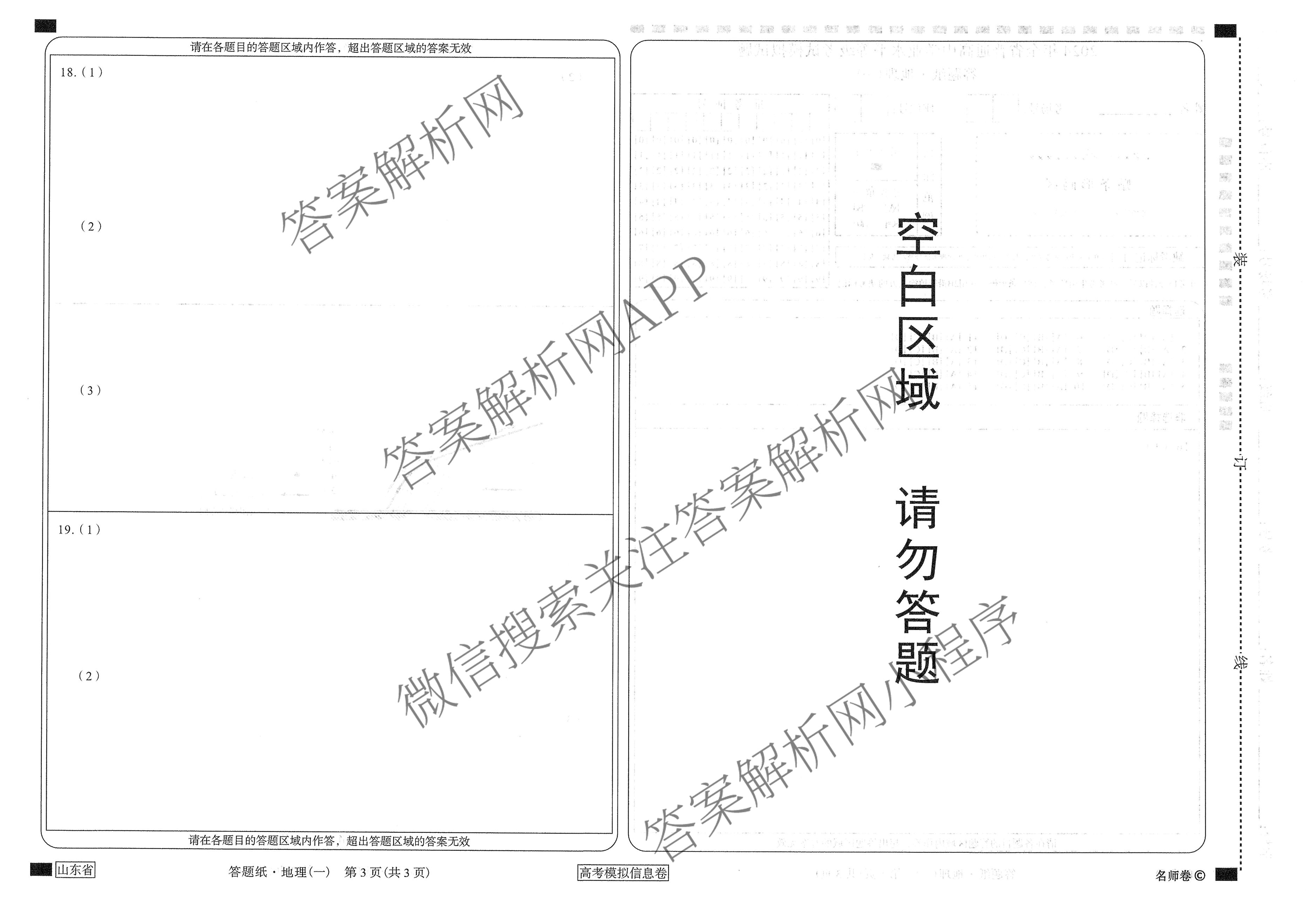 - (高三)(衡水名师卷)·高考模拟信息卷 2024年全省普通高中学业水平等级考试模拟 地理(空心◇山东省)(一)1答案