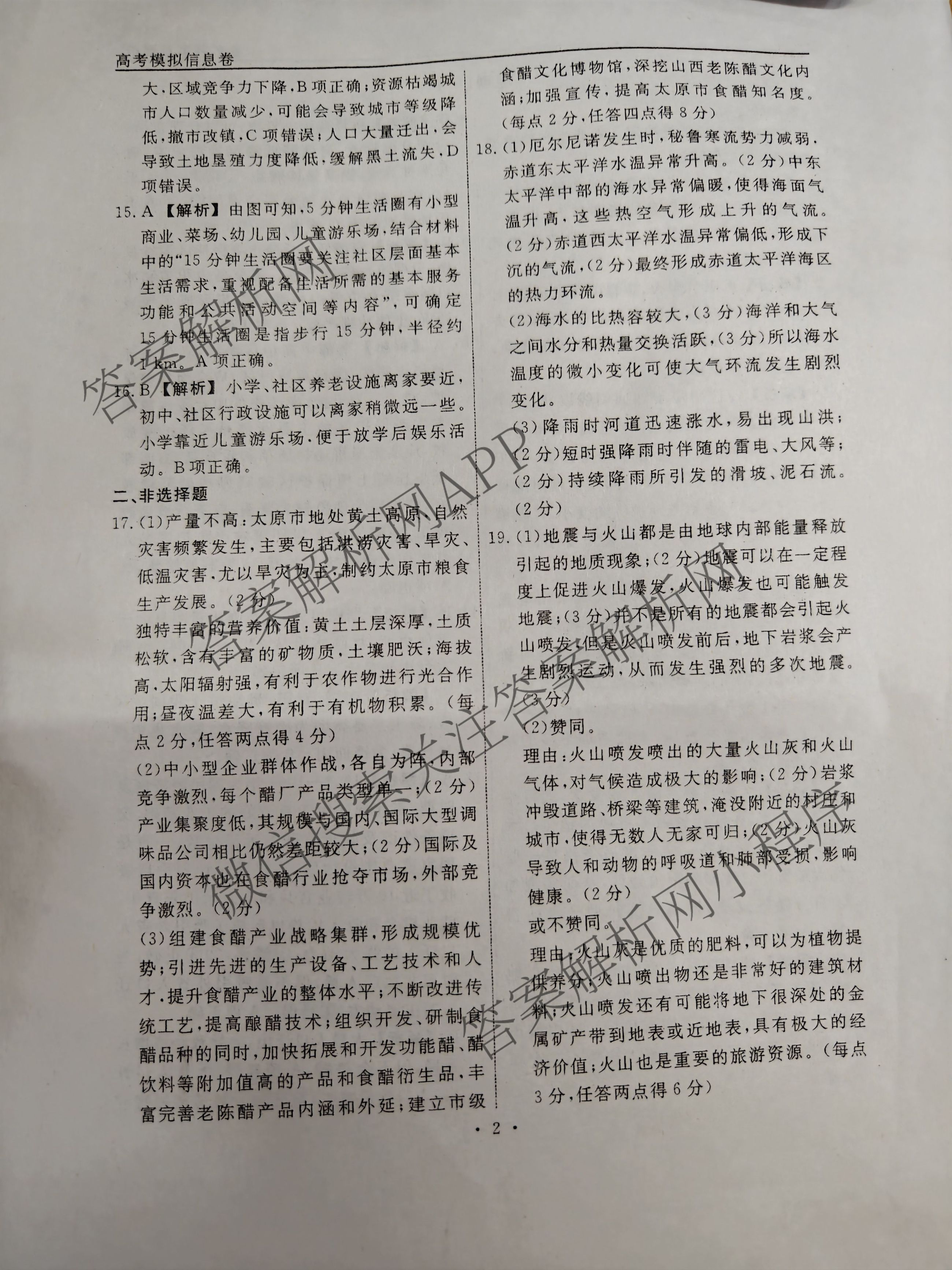 (高三)(衡水名师卷)·高考模拟信息卷2024年普通高等学校招生全国统一考试模拟 地理(实心○)(一)1答案