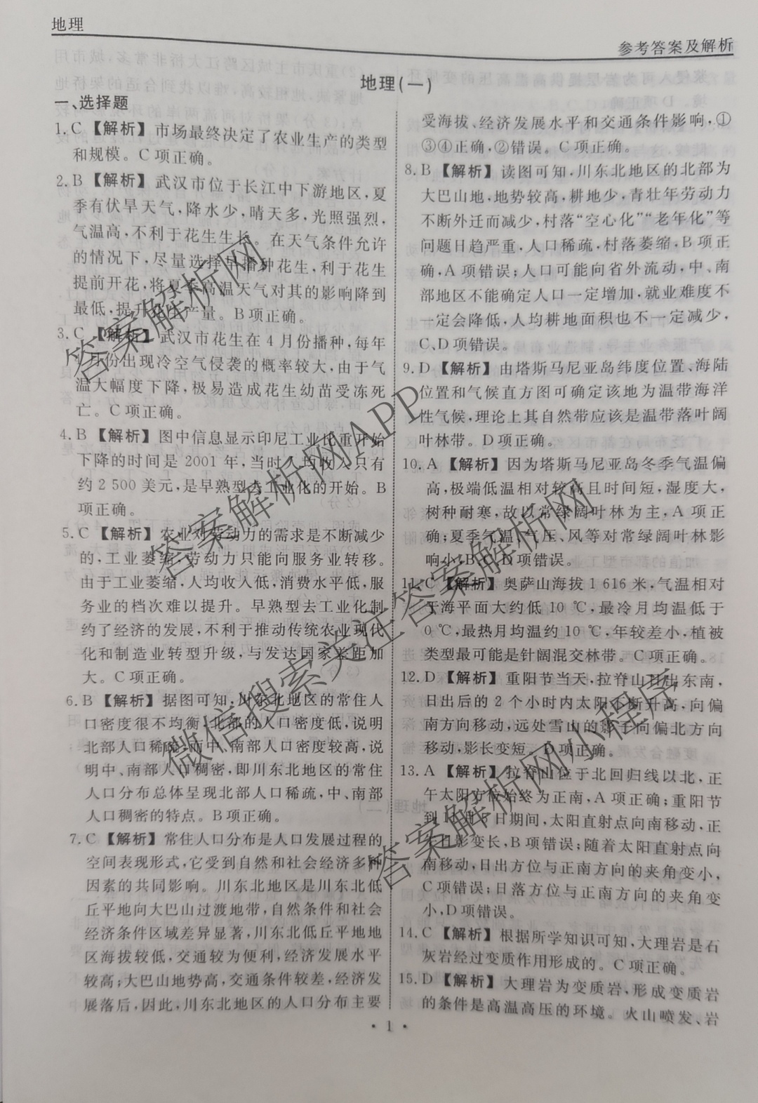 高三(衡水名师卷)高考模拟信息卷2024年普通高等学校招生全国统一考试模拟 地理(※)(一)1答案