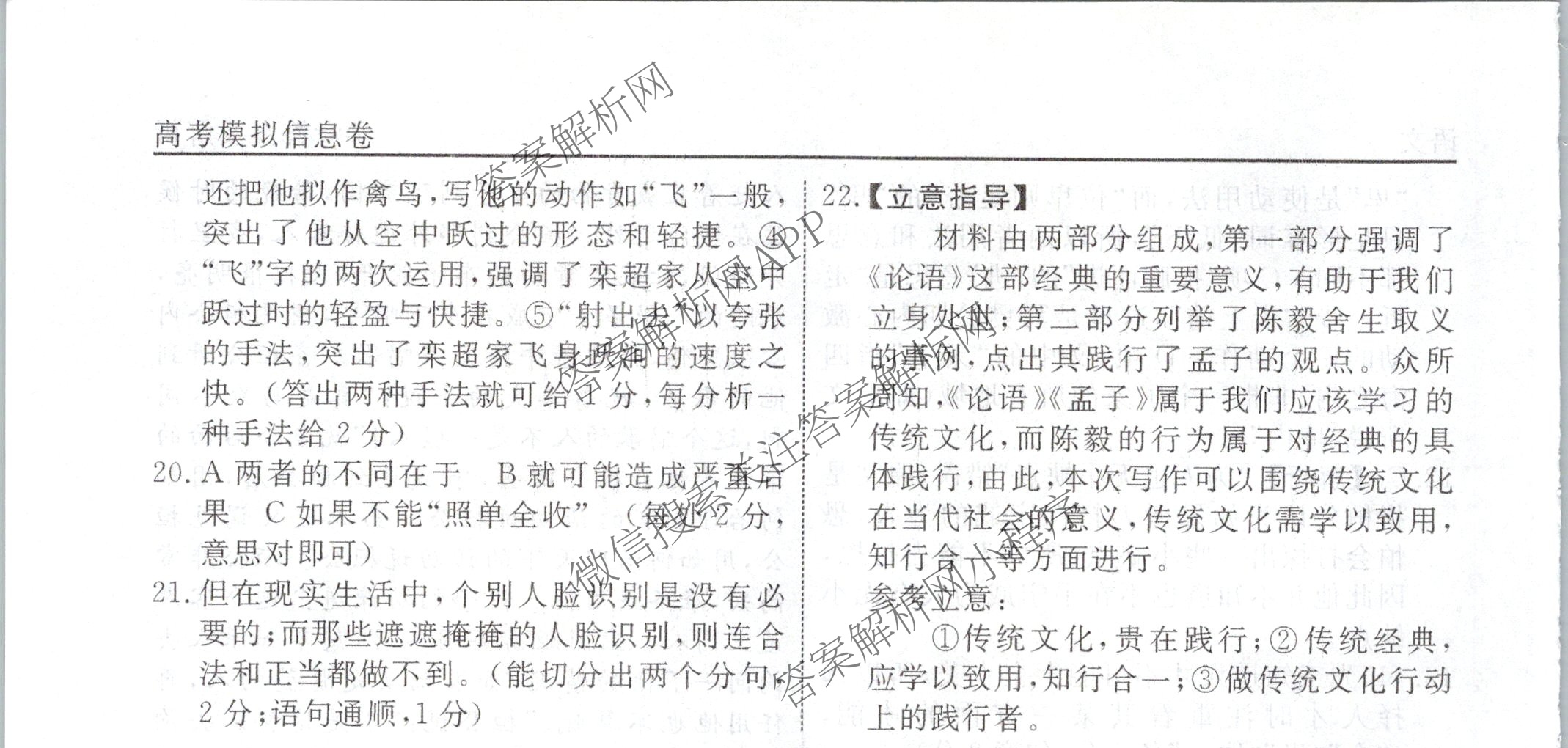 衡水名师卷高考模拟信息卷 2024年普通高等学校招生全国统一考试模拟 语文(无页脚 老教材)(五)5答案