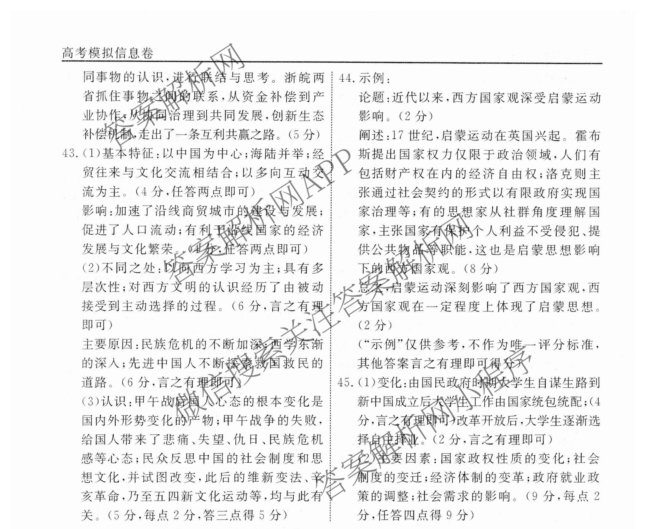 衡水名师卷高考模拟信息卷2024年普通高等学校招生全国统一考试模拟 文综(空心◇)(二)2答案