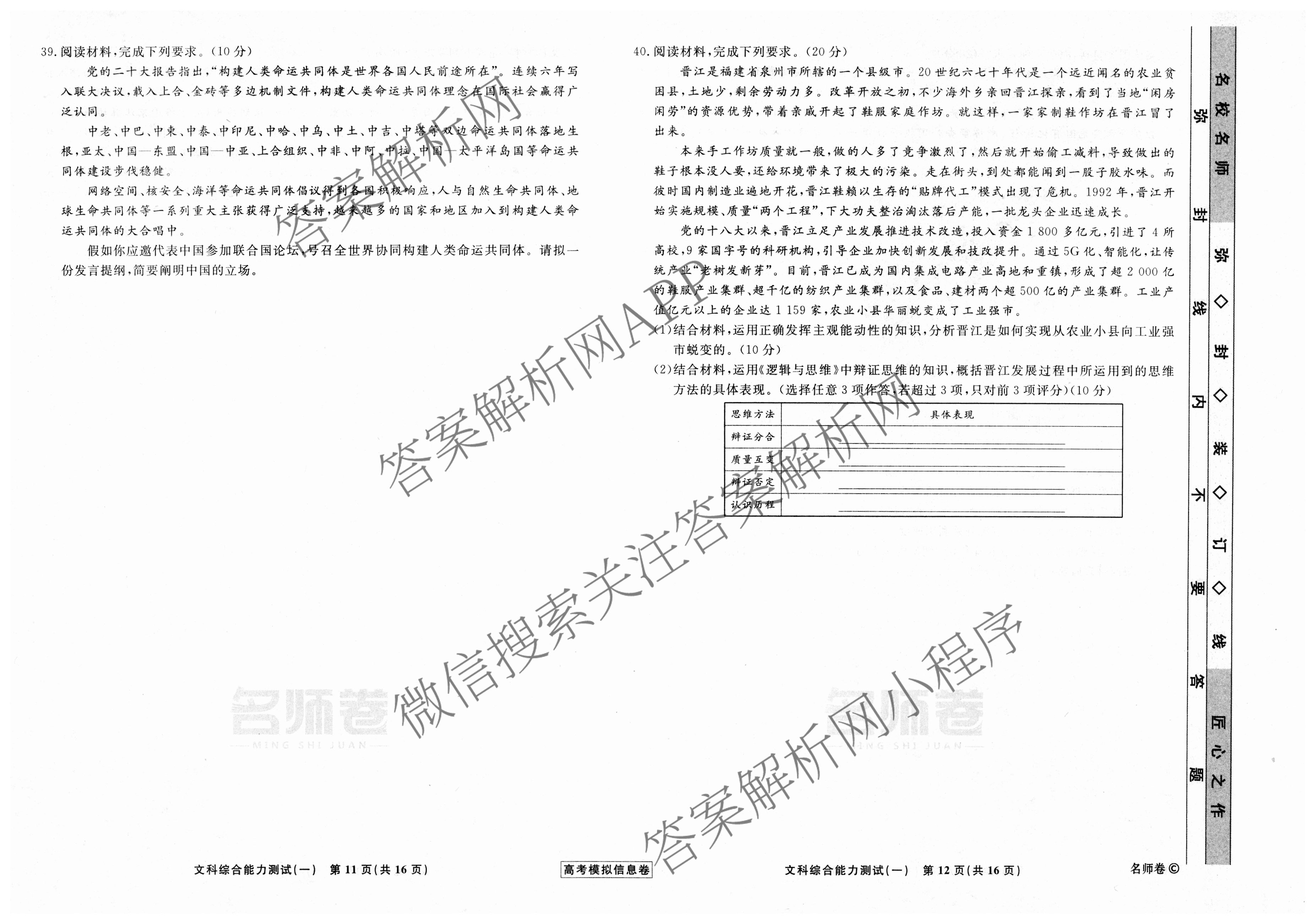 - (衡水名师卷)·高考模拟信息卷2024年普通高等学校招生全国统一考试模拟 文综(空心◇)(一)1答案