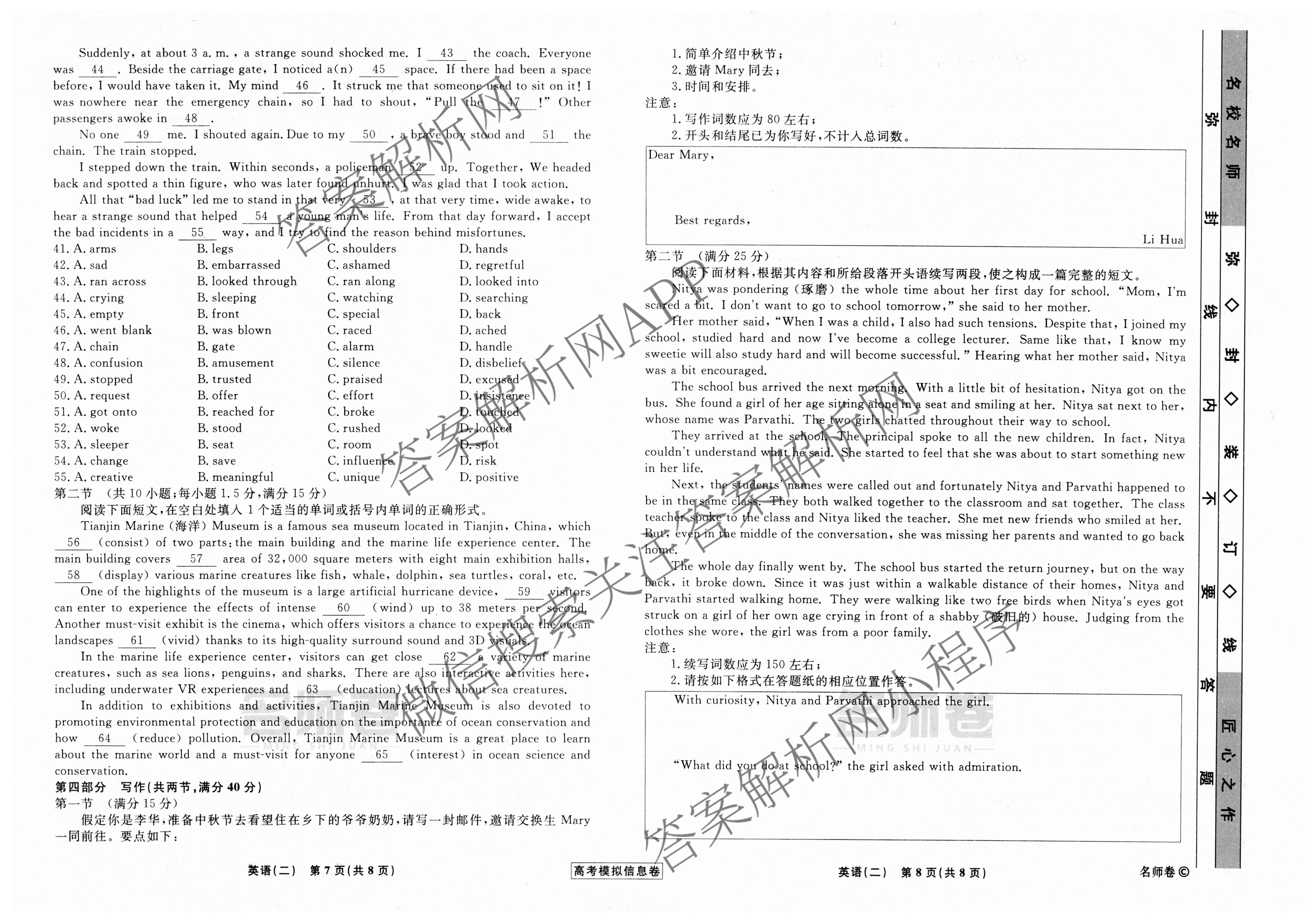 衡水名师卷高考模拟信息卷2024年普通高等学校招生全国统一考试模拟试题 英语(无页脚)(二)2试题