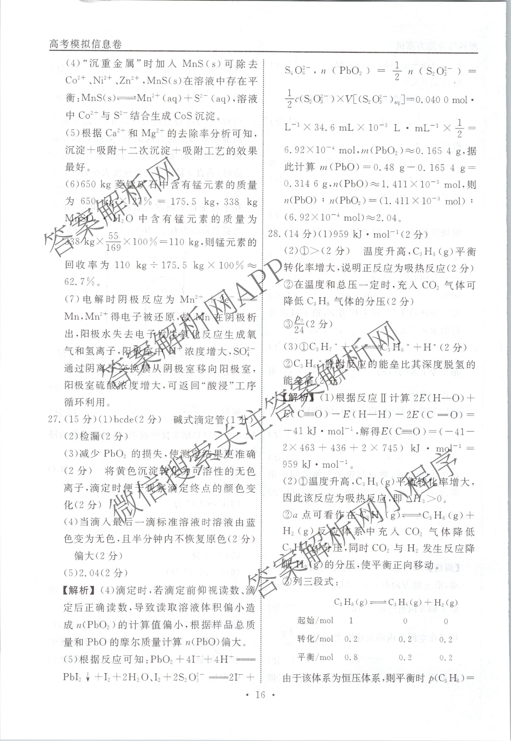 衡水名师卷高考模拟信息卷2024年普通高等学校招生全国统一考试模拟 理综(实心◇老高考)(二)2答案
