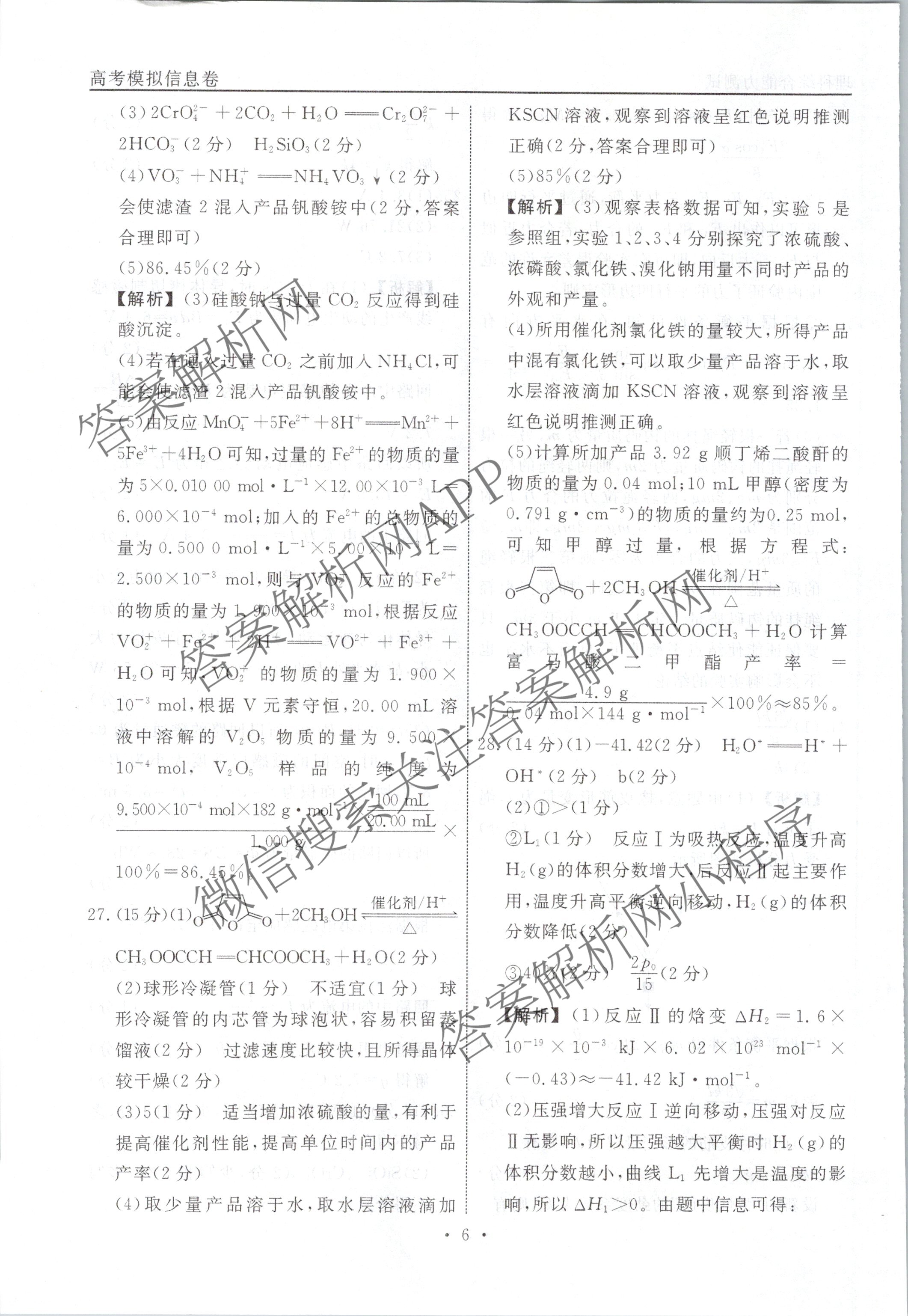 - [衡水名师卷]高考模拟信息卷2024年普通高等学校招生全国统一考试模拟 化学(※)(一)1答案
