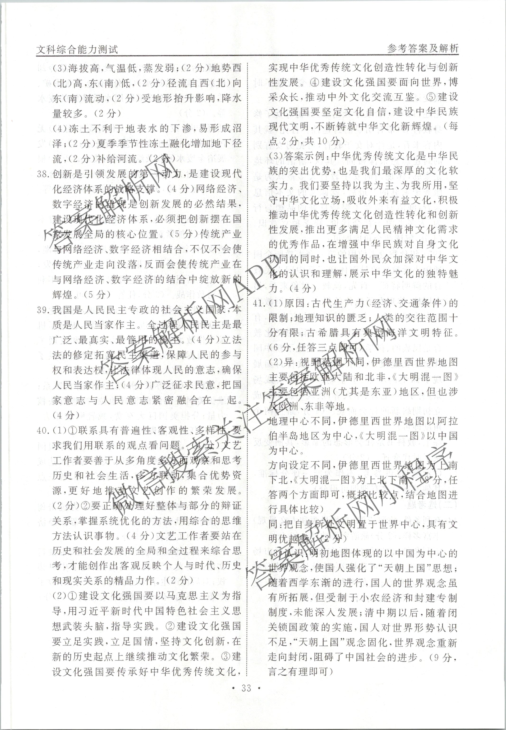 衡水名师卷高考模拟信息卷2024年普通高等学校招生全国统一考试模拟 文综(实心◇)(六)6答案