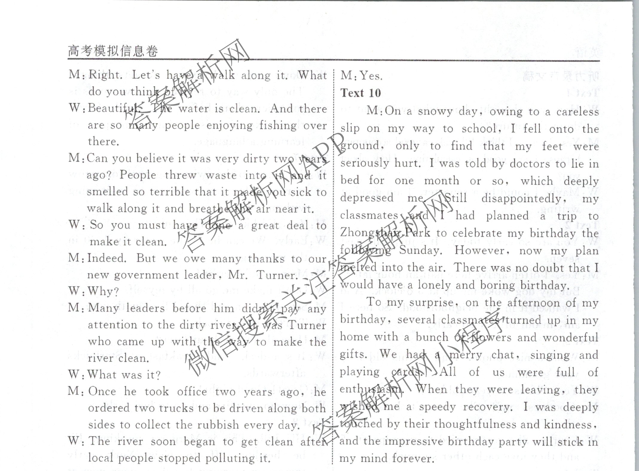 [高三]衡水名师卷·高考模拟信息卷2024年普通高等学校招生全国统一考试模拟 英语(实心◇·老高考)(一)1答案