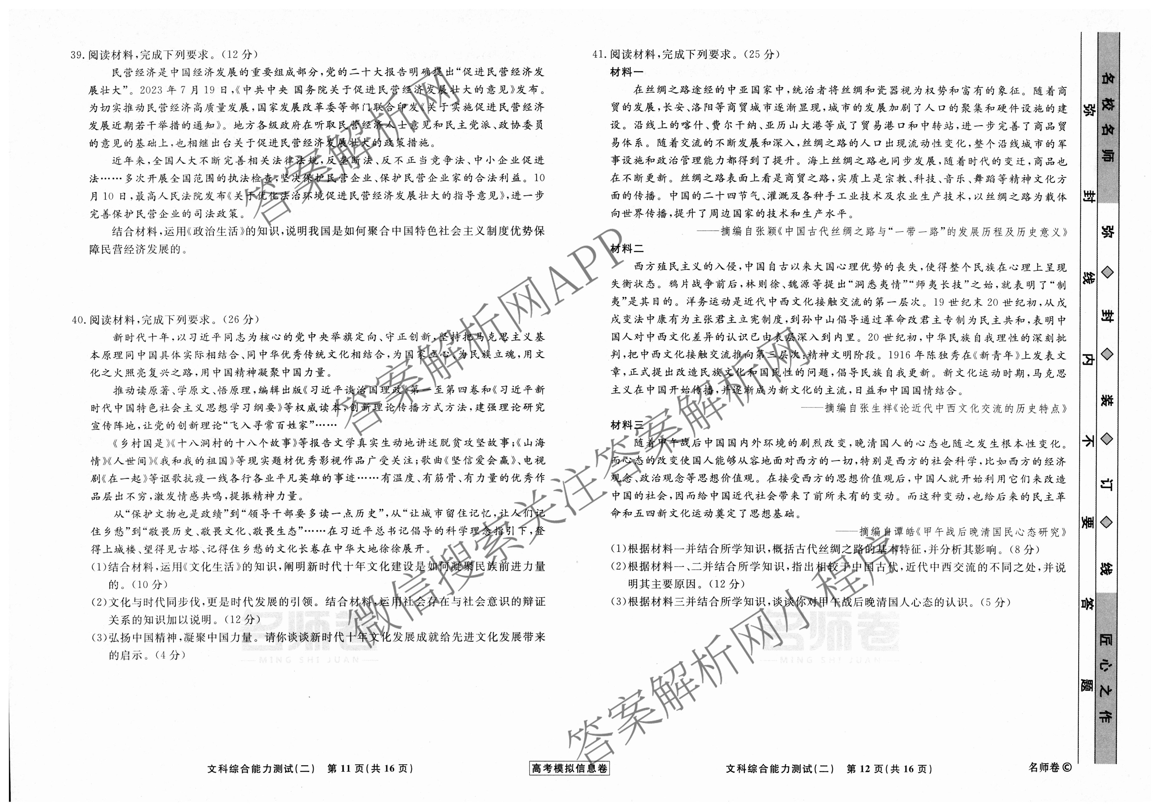 衡水名师卷高考模拟信息卷2024年普通高等学校招生全国统一考试模拟 文综(实心◇)(二)2试题