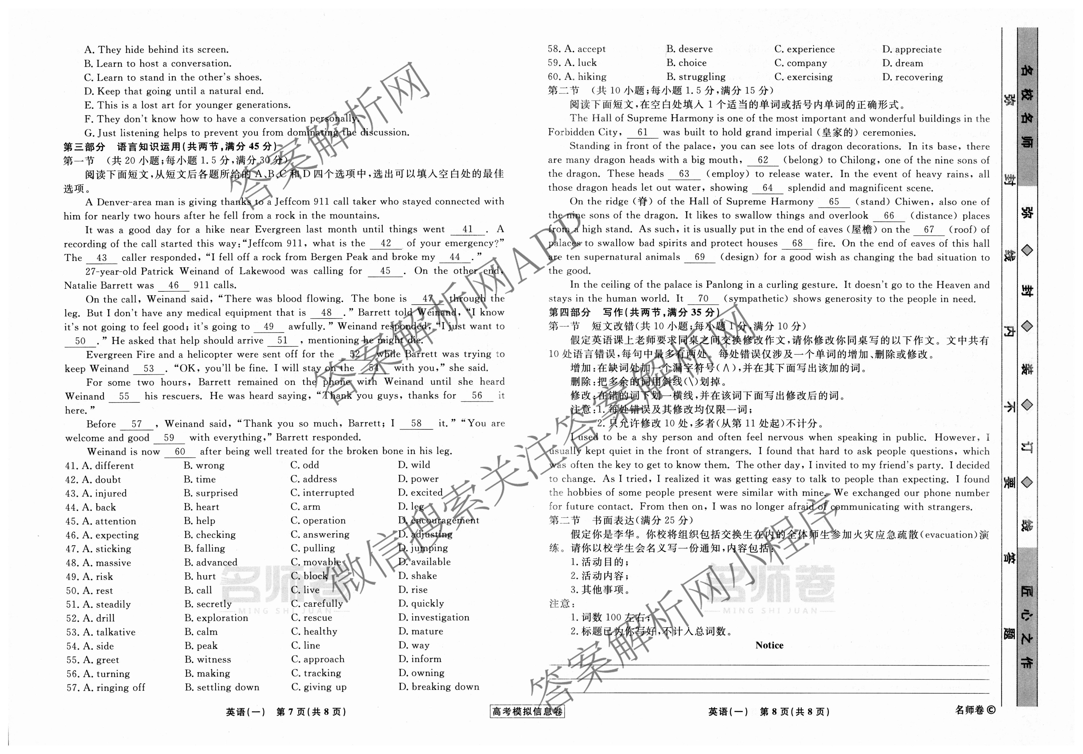 - [高三][衡水名师卷]高考模拟信息卷2024年普通高等学校招生全国统一考试模拟 英语(实心◇老高考)(一)1试题