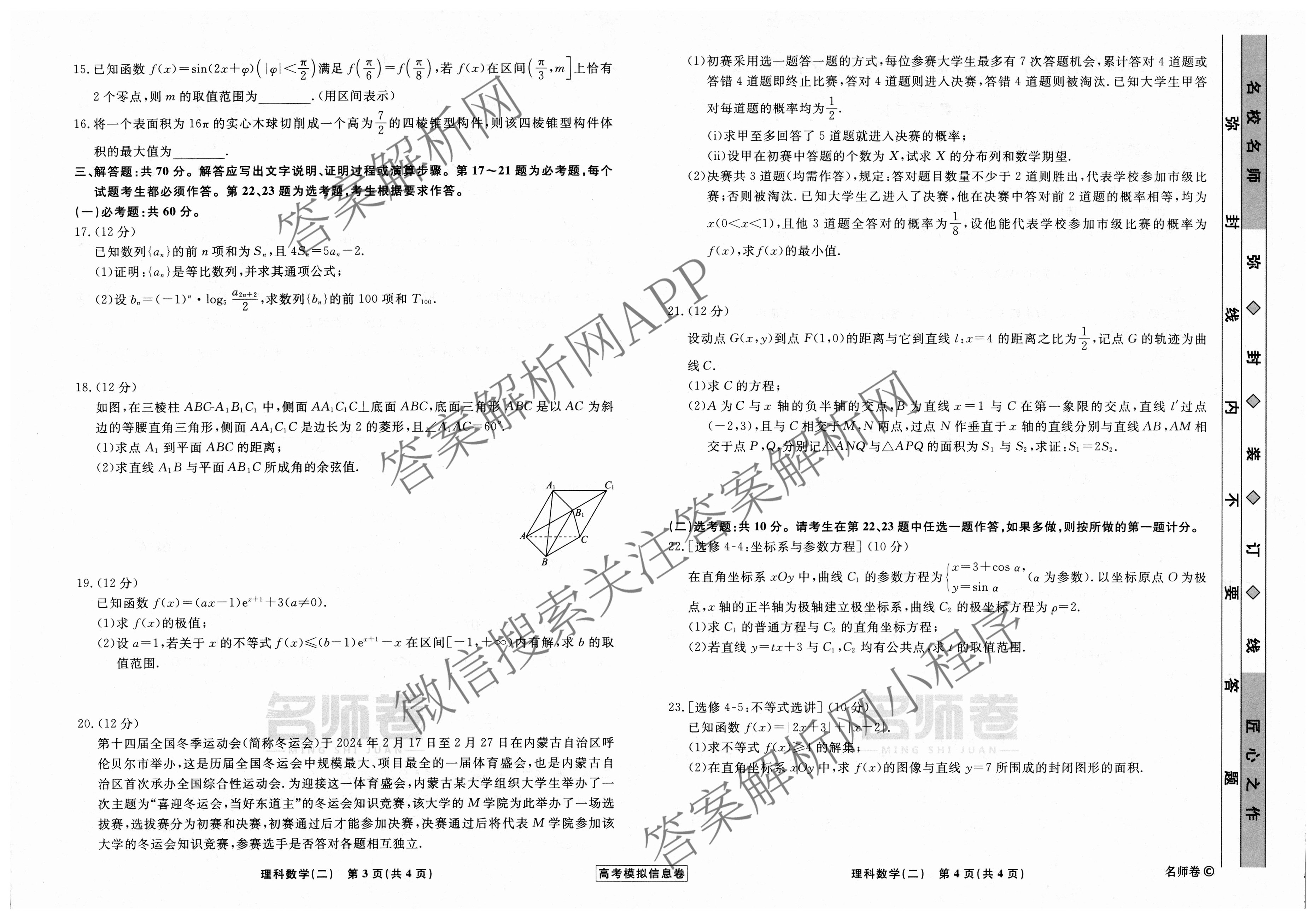 衡水名师卷·高考模拟信息卷2024年普通高等学校招生全国统一考试模拟 理数(实心◇)(二)2试题,目前分科卷答案网已经汇总了衡水名师卷·高考模拟信息卷2024年普通高等学校招生全国统一考试模拟 理数(实心◇)(二)2试题的各科答案和试卷,获取更多衡水名师卷答案解析,请在关注本站。