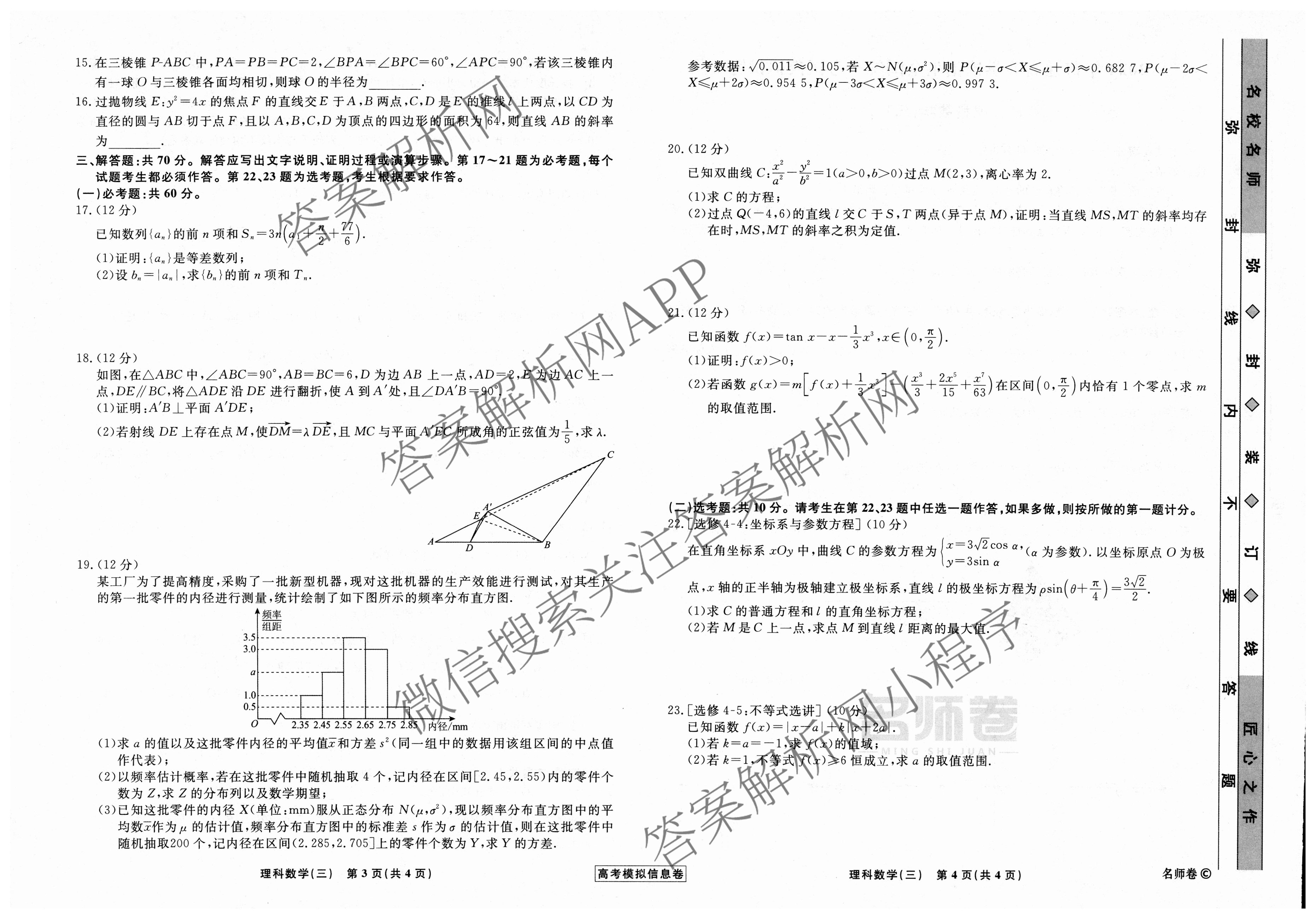 衡水名师卷高考模拟信息卷2024年普通高等学校招生全国统一考试模拟 理数(实心◇)(三)3试题