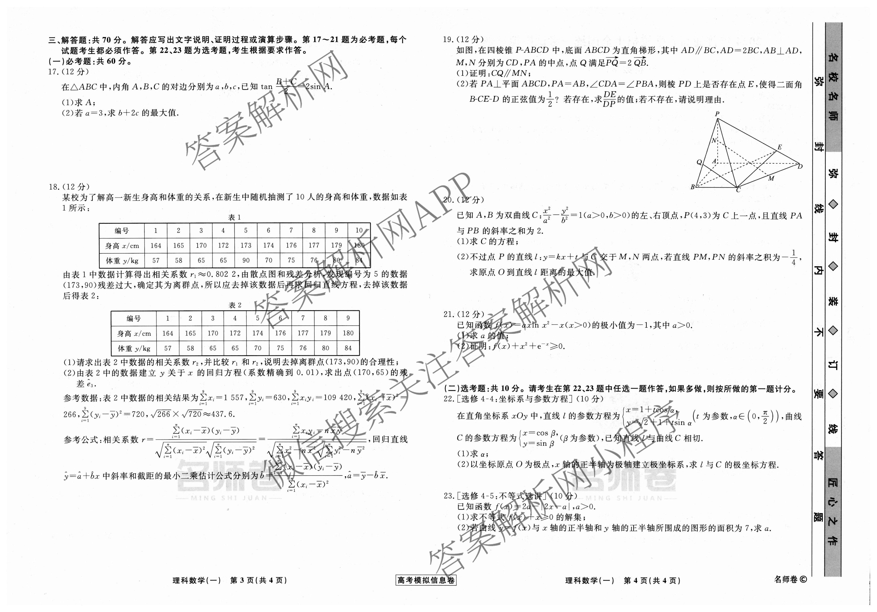 - [衡水名师卷]高考模拟信息卷 2024年普通高等学校招生全国统一考试模拟 理数(老教材)(一)1答案