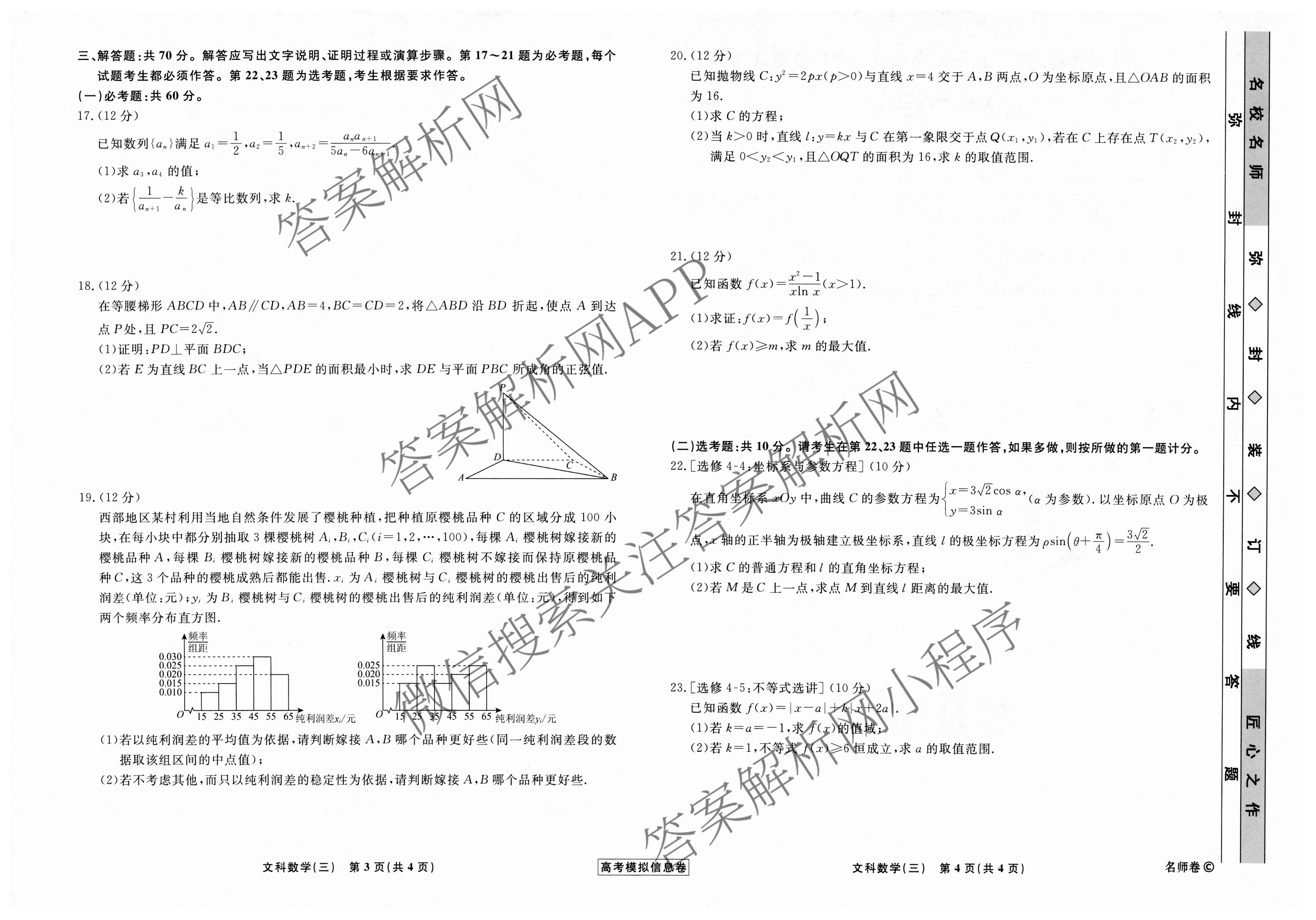 衡水名师卷高考模拟信息卷2024年普通高等学校招生全国统一考试模拟 文数(实心◇)(三)3试题