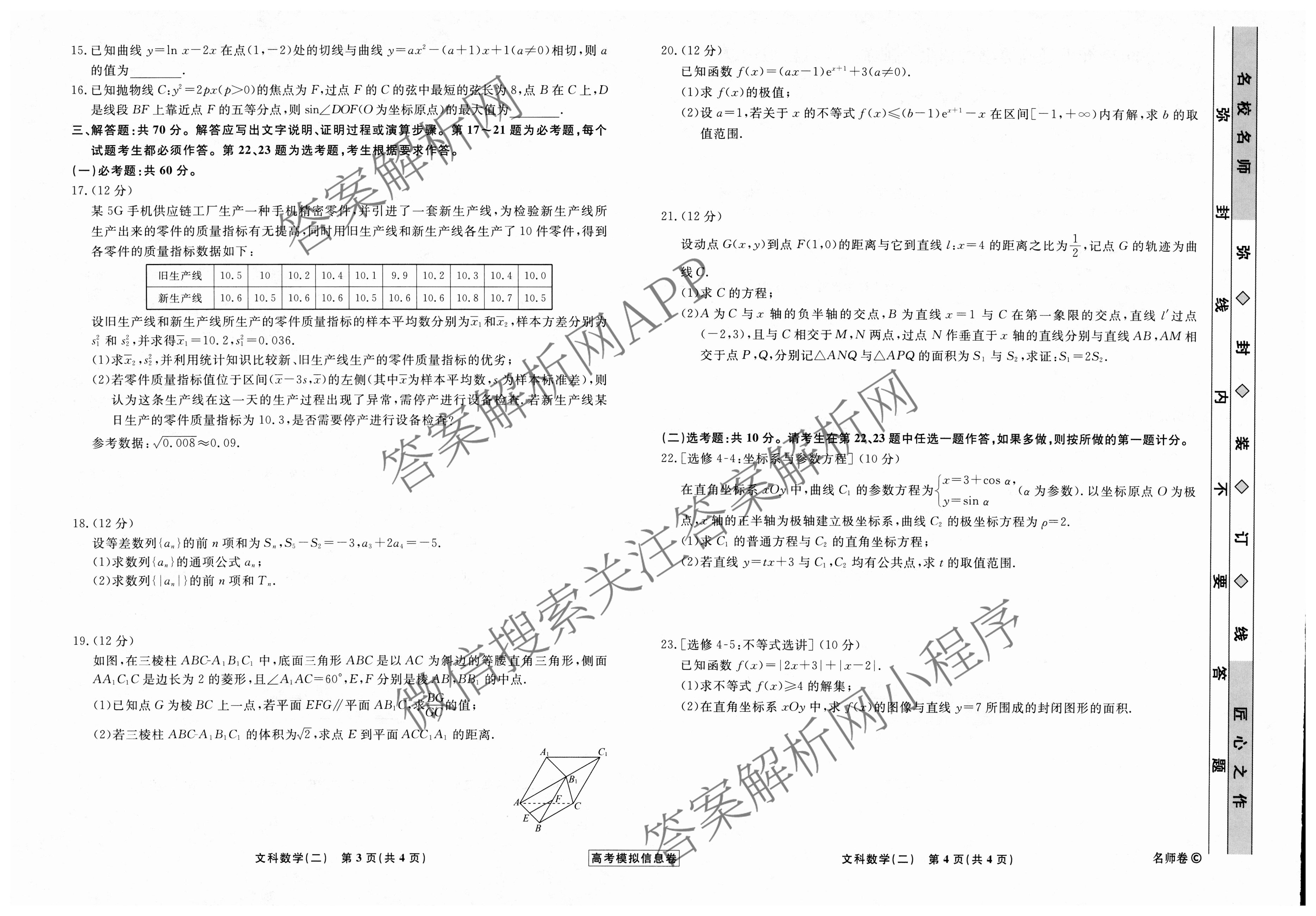 衡水名师卷·高考模拟信息卷2024年普通高等学校招生全国统一考试模拟 文数(实心◇)(二)2试题,目前分科卷答案网已经汇总了衡水名师卷·高考模拟信息卷2024年普通高等学校招生全国统一考试模拟 文数(实心◇)(二)2试题的各科答案和试卷,获取更多衡水名师卷答案解析,请在关注本站。