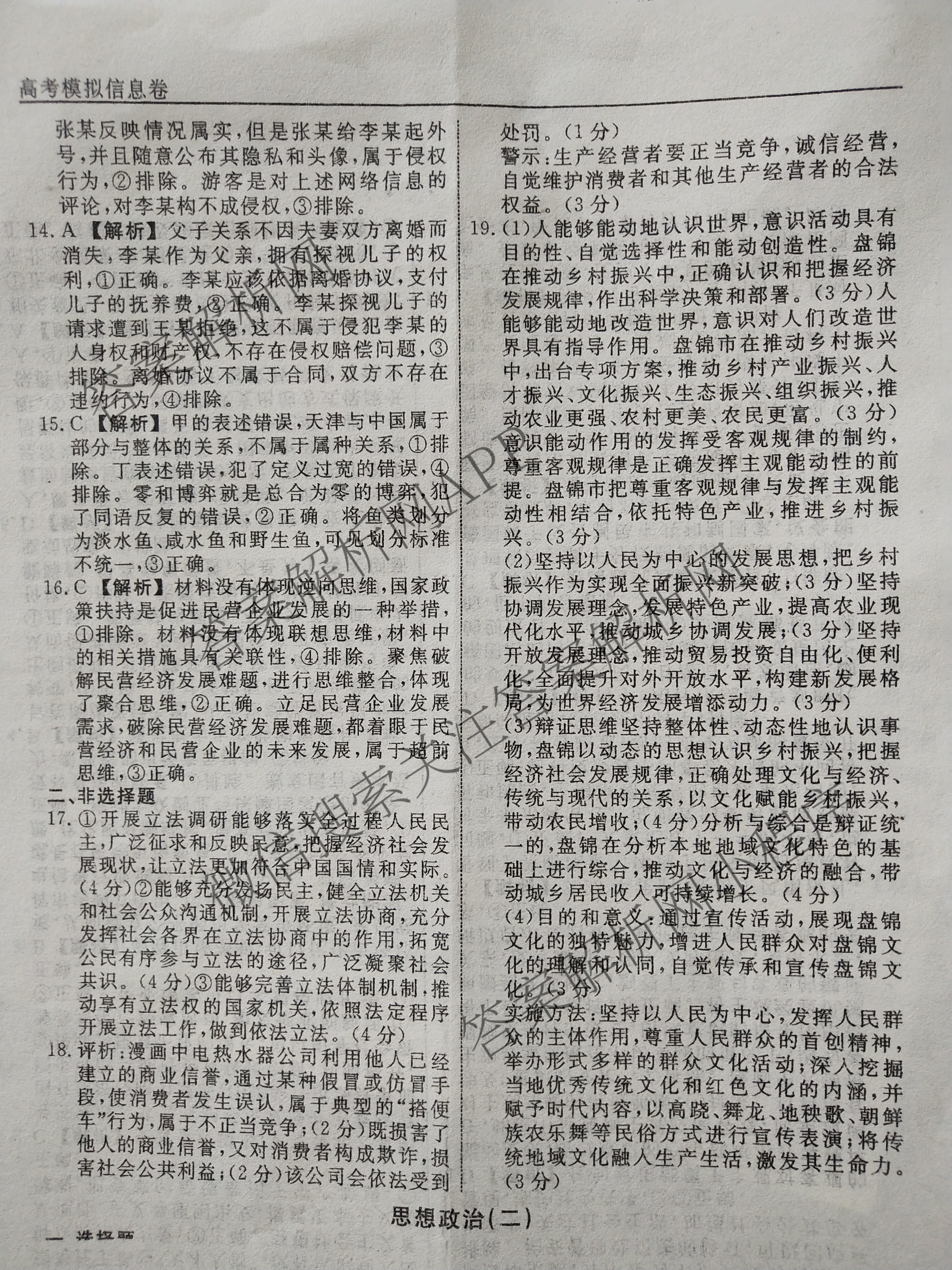 [高三]辽宁省名校联盟2024年高考模拟卷(信息卷)(一)政治答案