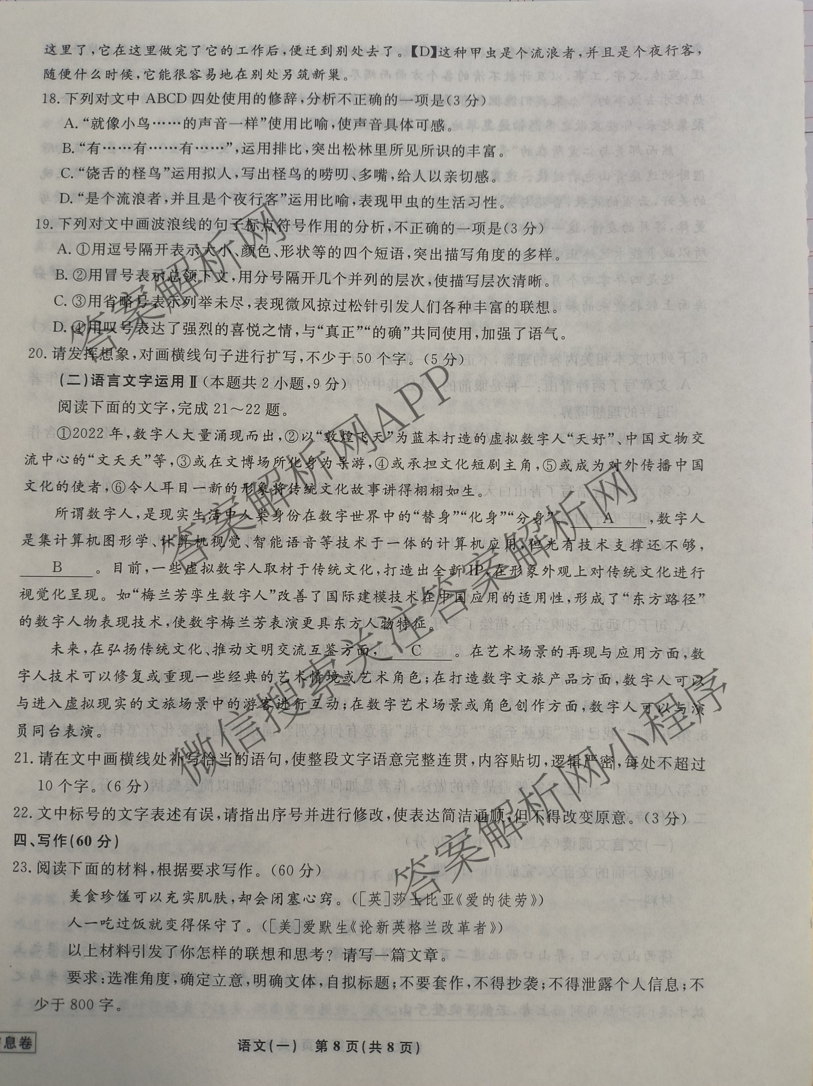 辽宁省名校联盟2024年高考模拟卷(信息卷)(一)语文试题,目前分科卷答案网已经汇总了辽宁省名校联盟2024年高考模拟卷(信息卷)(一)语文试题的各科答案和试卷,获取更多衡水名师卷答案解析,请在关注本站。