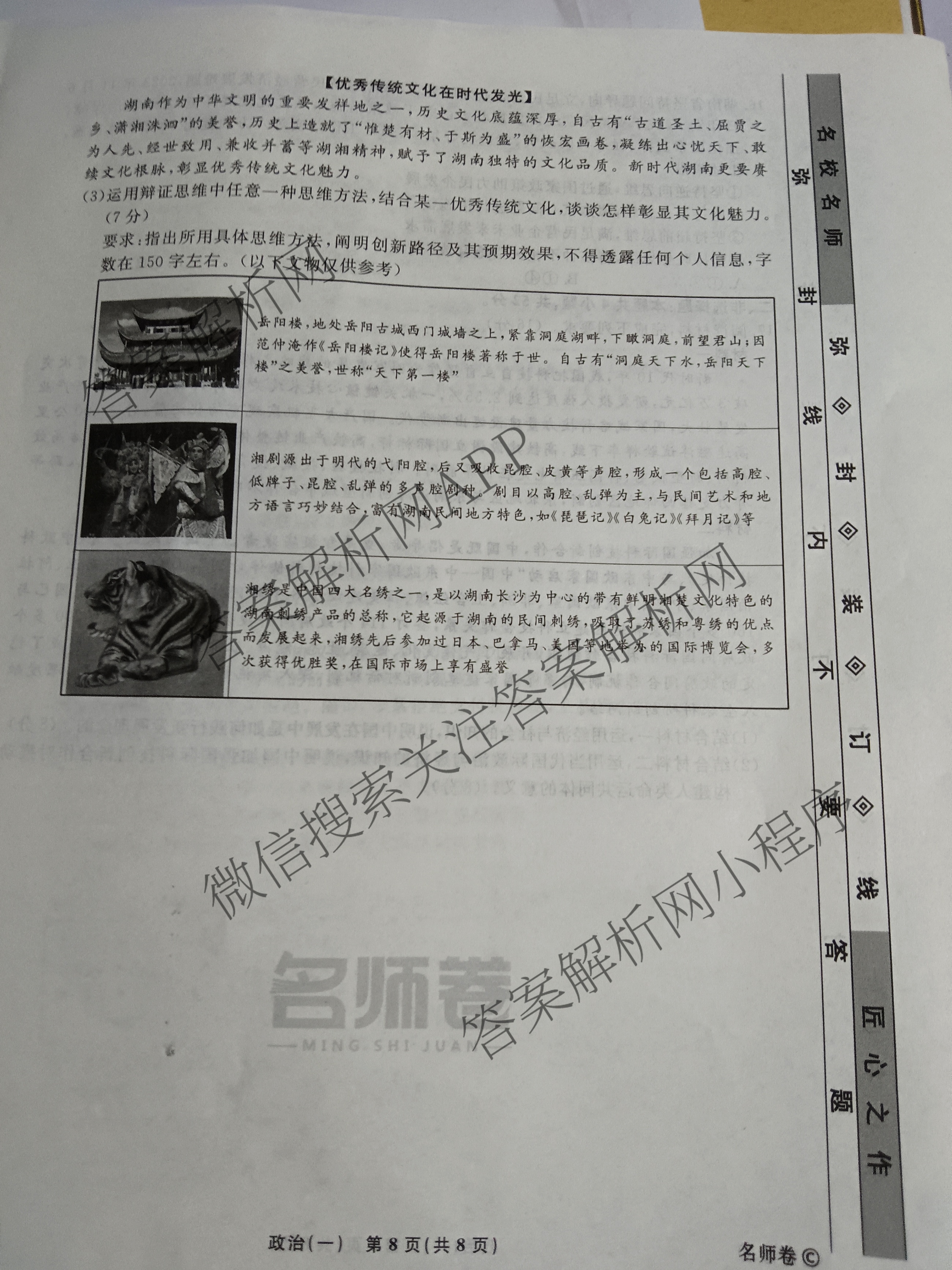 衡水名师卷·高考模拟信息卷2024年普通高等学校招生全国统一考试模拟 政治(双菱形)(一)试题,目前分科卷答案网已经汇总了衡水名师卷·高考模拟信息卷2024年普通高等学校招生全国统一考试模拟 政治(双菱形)(一)试题的各科答案和试卷,获取更多衡水名师卷答案解析,请在关注本站。