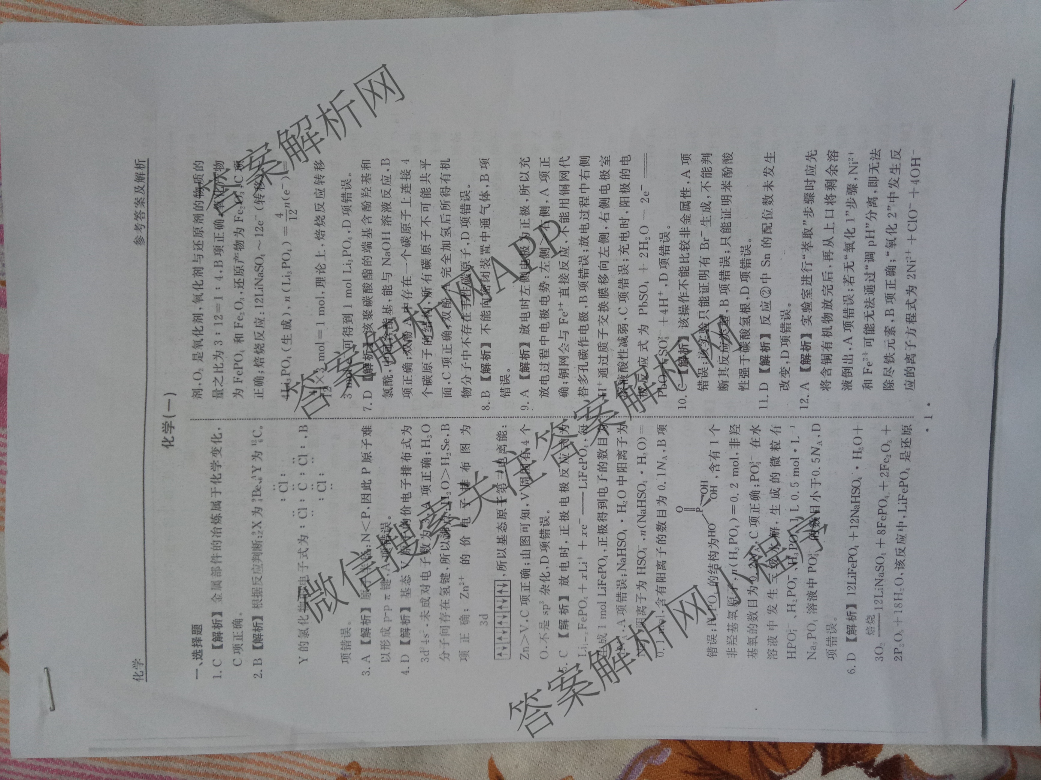 [衡水名师卷]高考模拟信息卷2024年普通高等学校招生全国统一考试模拟 化学(※)(一)1答案