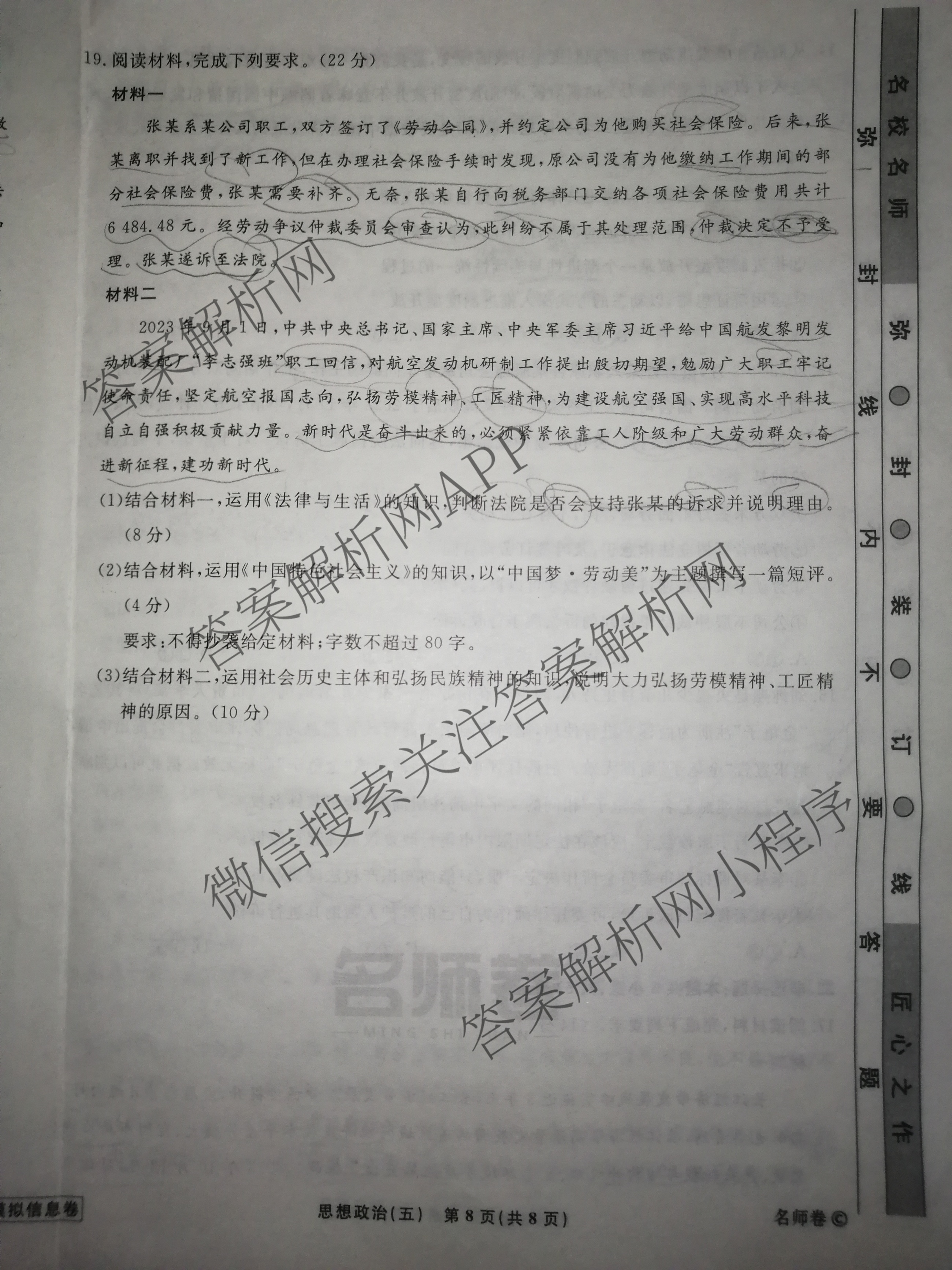 衡水名师卷·高考模拟信息卷2024年普通高等学校招生全国统一考试模拟 政治(实心○)(五)试题,目前分科卷答案网已经汇总了衡水名师卷·高考模拟信息卷2024年普通高等学校招生全国统一考试模拟 政治(实心○)(五)试题的各科答案和试卷,获取更多衡水名师卷答案解析,请在关注本站。