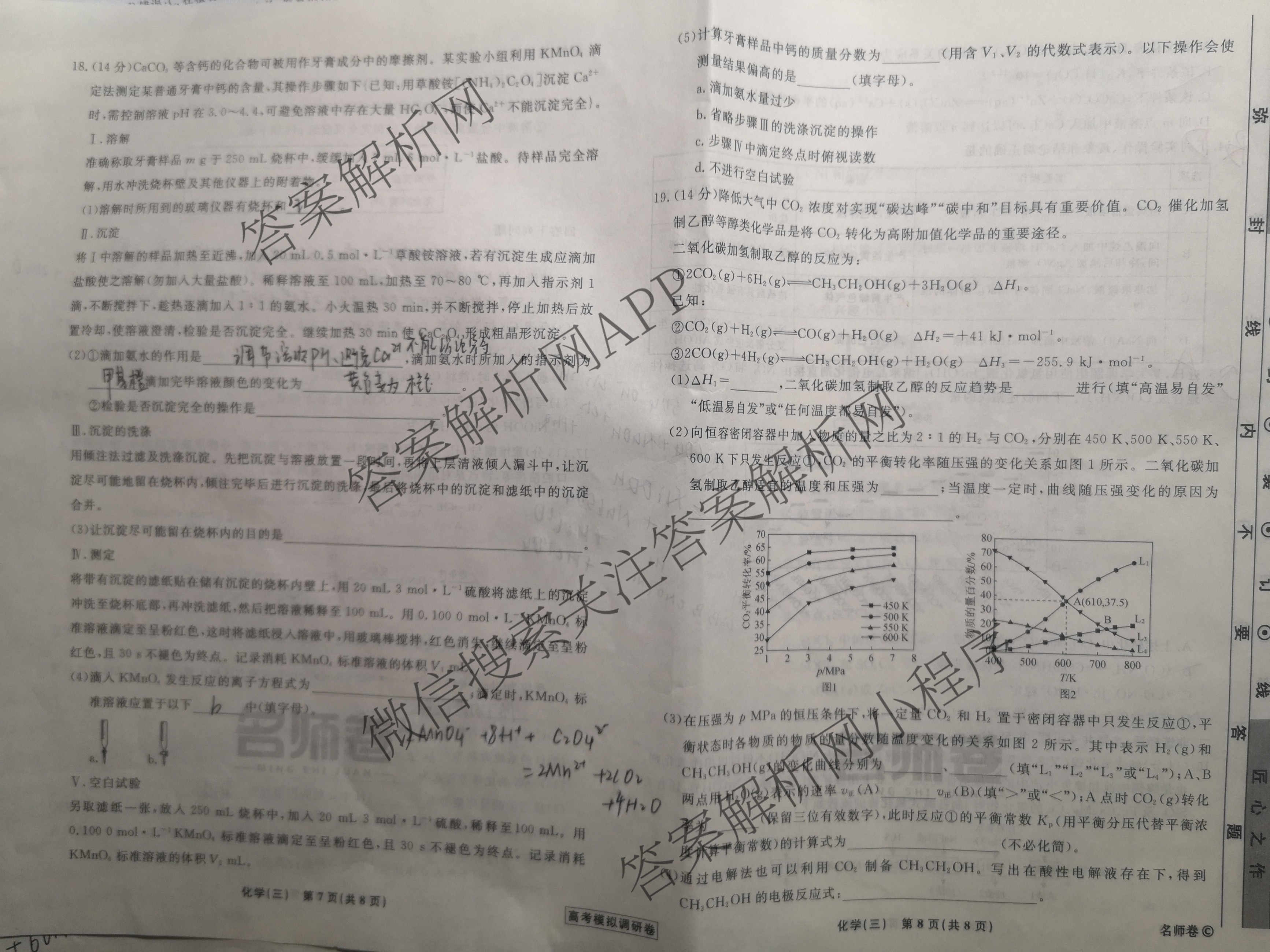 - [高三][衡水名师卷]高考模拟调研卷 2024年普通高中学业水平选择性考试模拟试题 化学(双菱形)(三)3答案