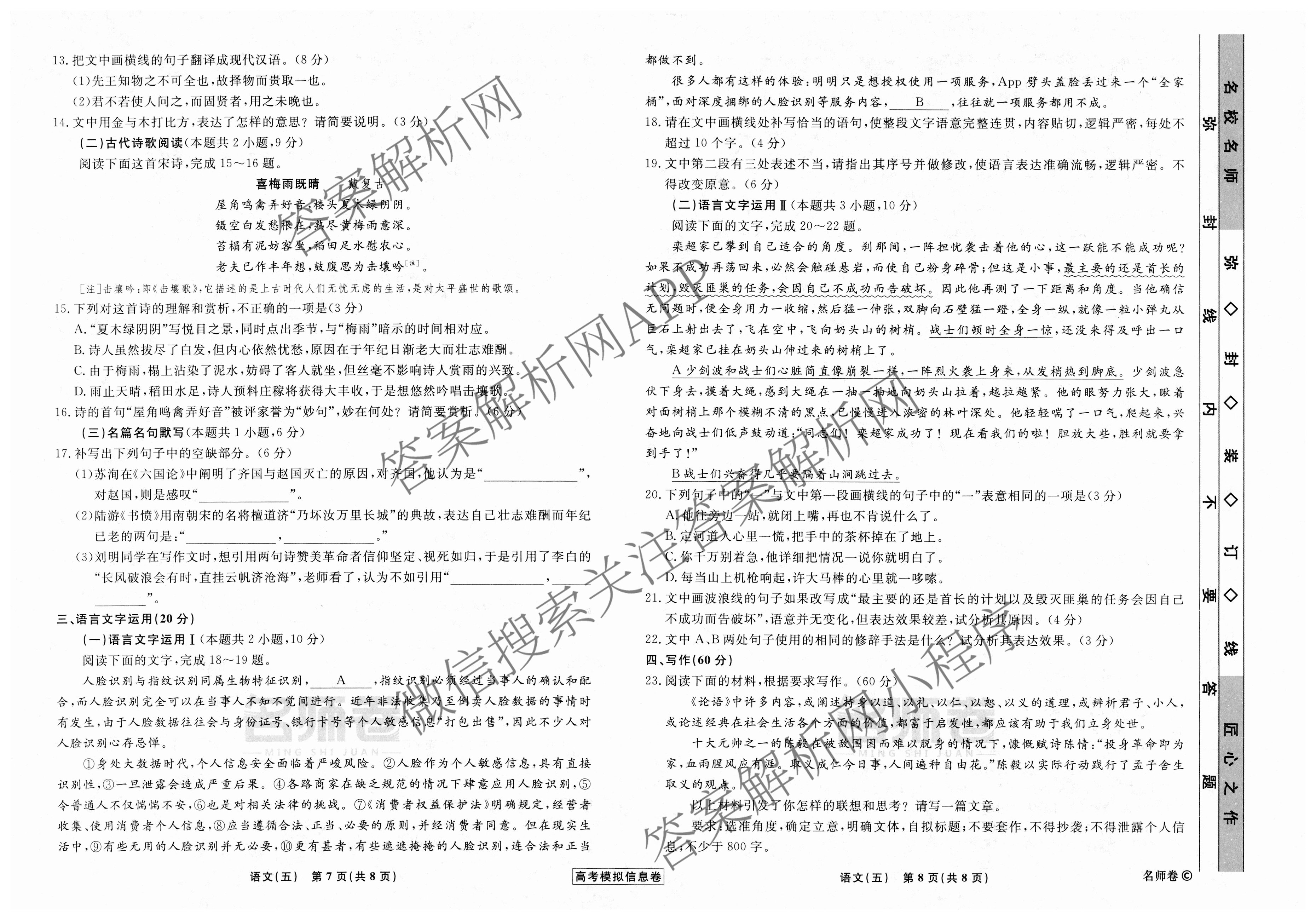 衡水名师卷高考模拟信息卷 2024年普通高等学校招生全国统一考试模拟试题 语文(无页脚)(五)5试题