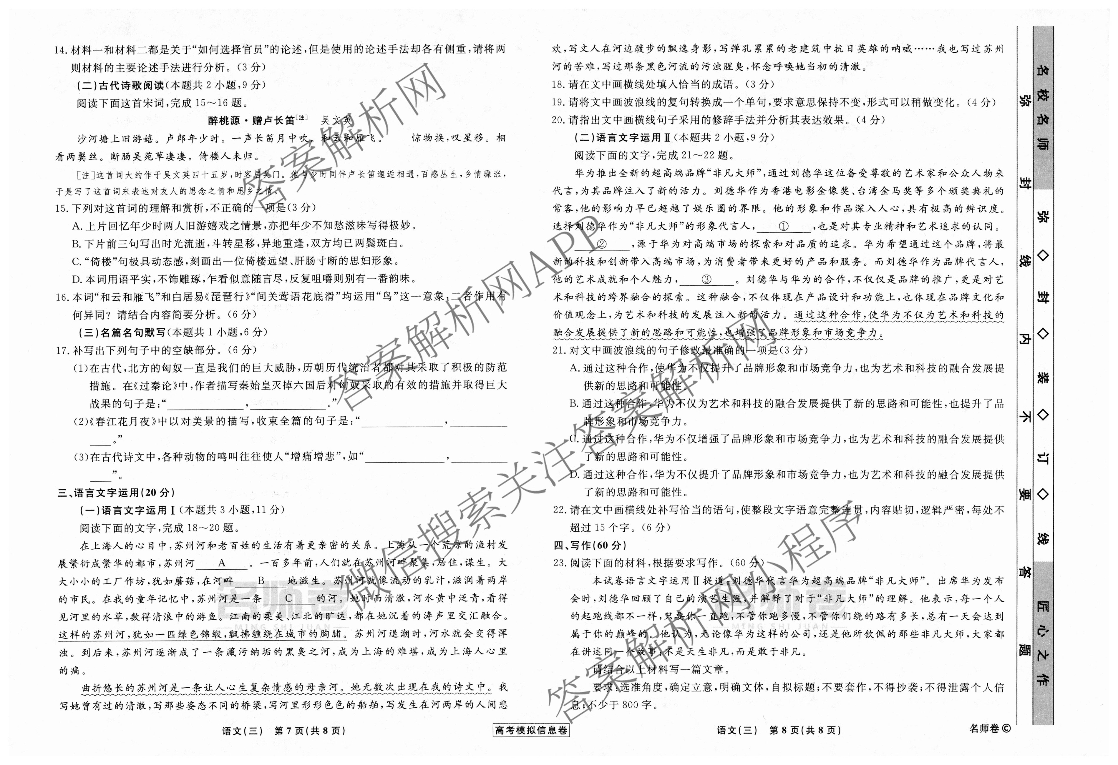 衡水名师卷·高考模拟信息卷 2024年普通高等学校招生全国统一考试模拟试题 语文(无页脚)(三)3试题,目前分科卷答案网已经汇总了衡水名师卷·高考模拟信息卷 2024年普通高等学校招生全国统一考试模拟试题 语文(无页脚)(三)3试题的各科答案和试卷,获取更多衡水名师卷答案解析,请在关注本站。