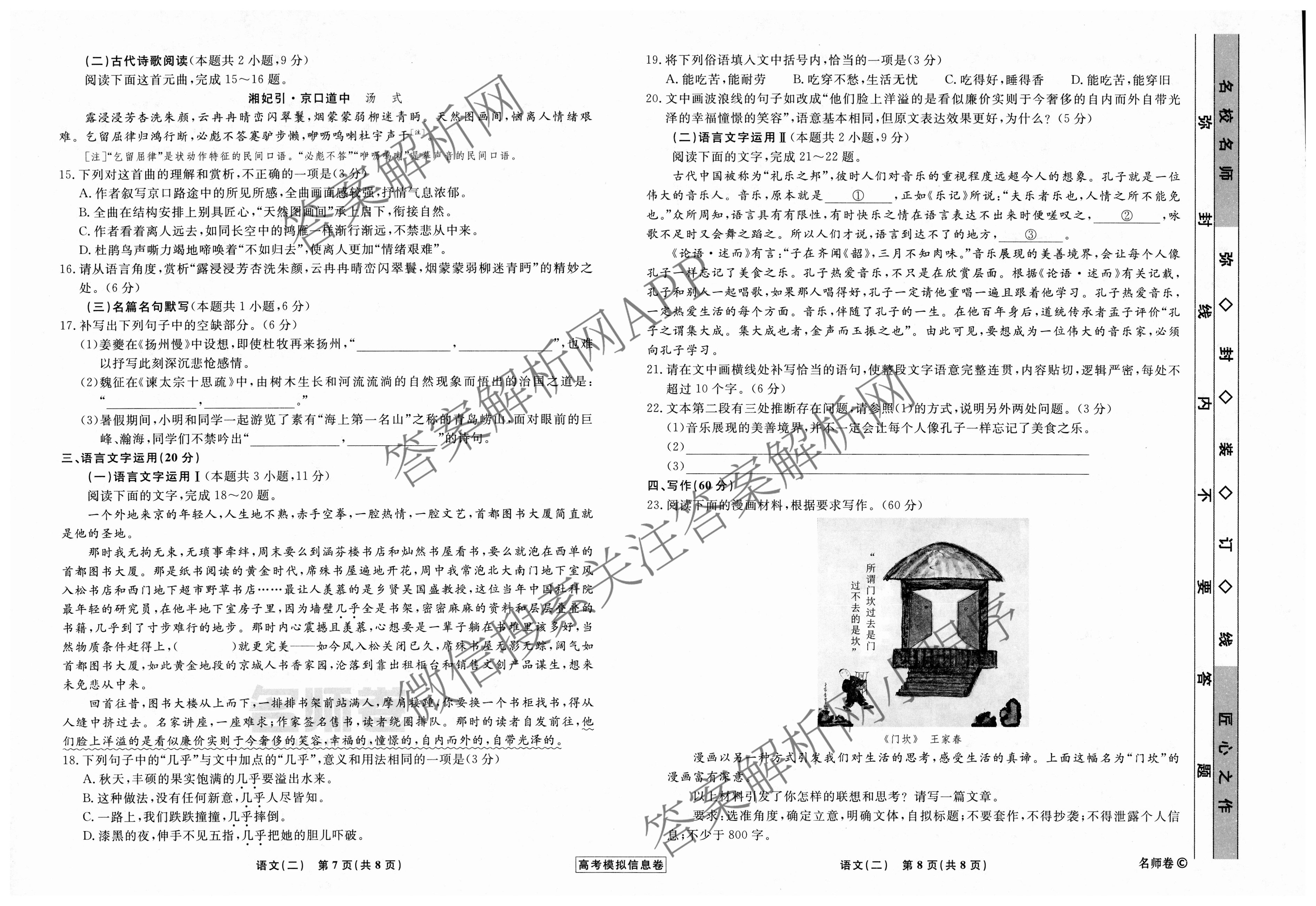 衡水名师卷高考模拟信息卷 2024年普通高等学校招生全国统一考试模拟试题 语文(无页脚)(二)2试题