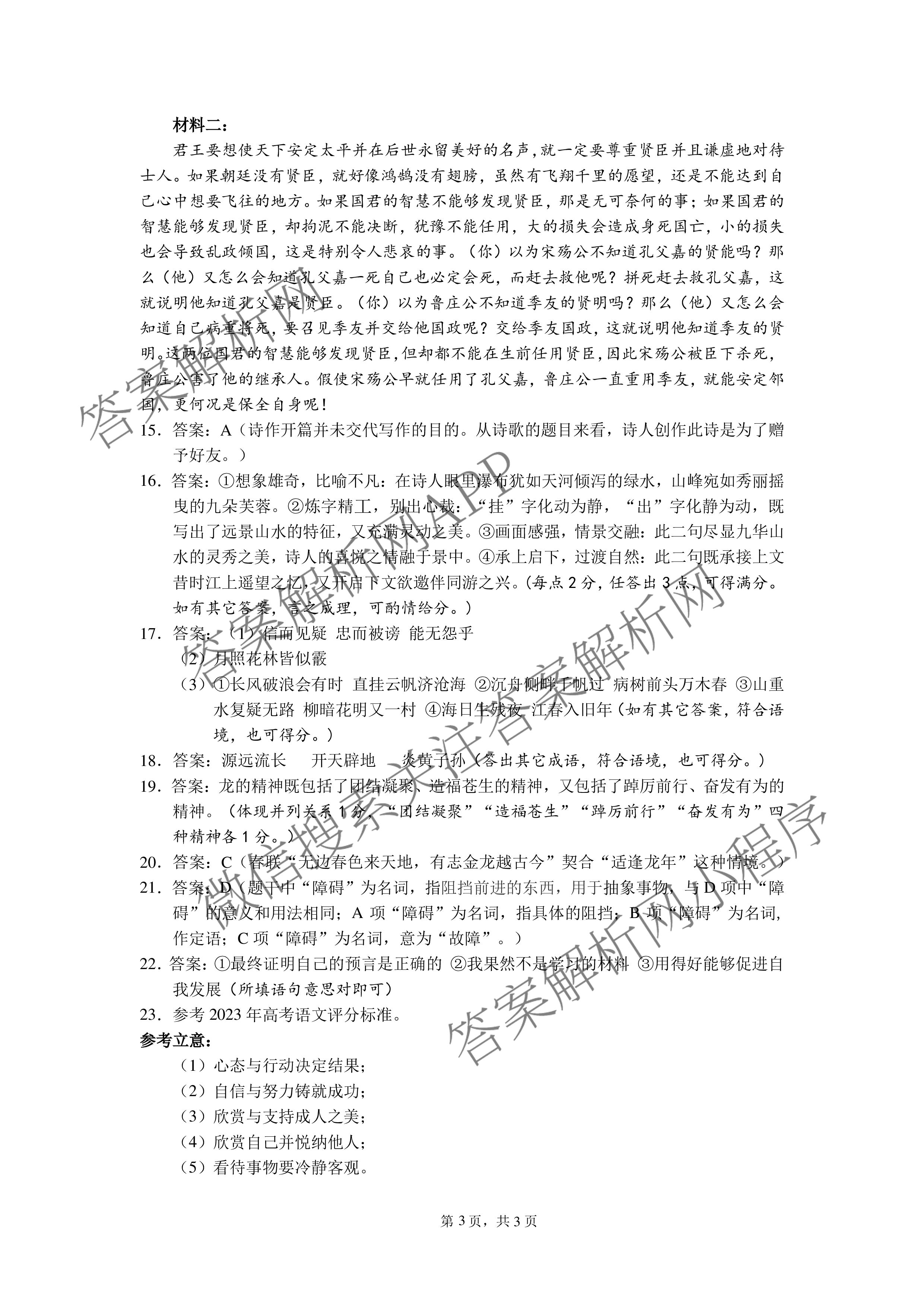 2024届高三安徽省"(江南十校)"联考语文答案
