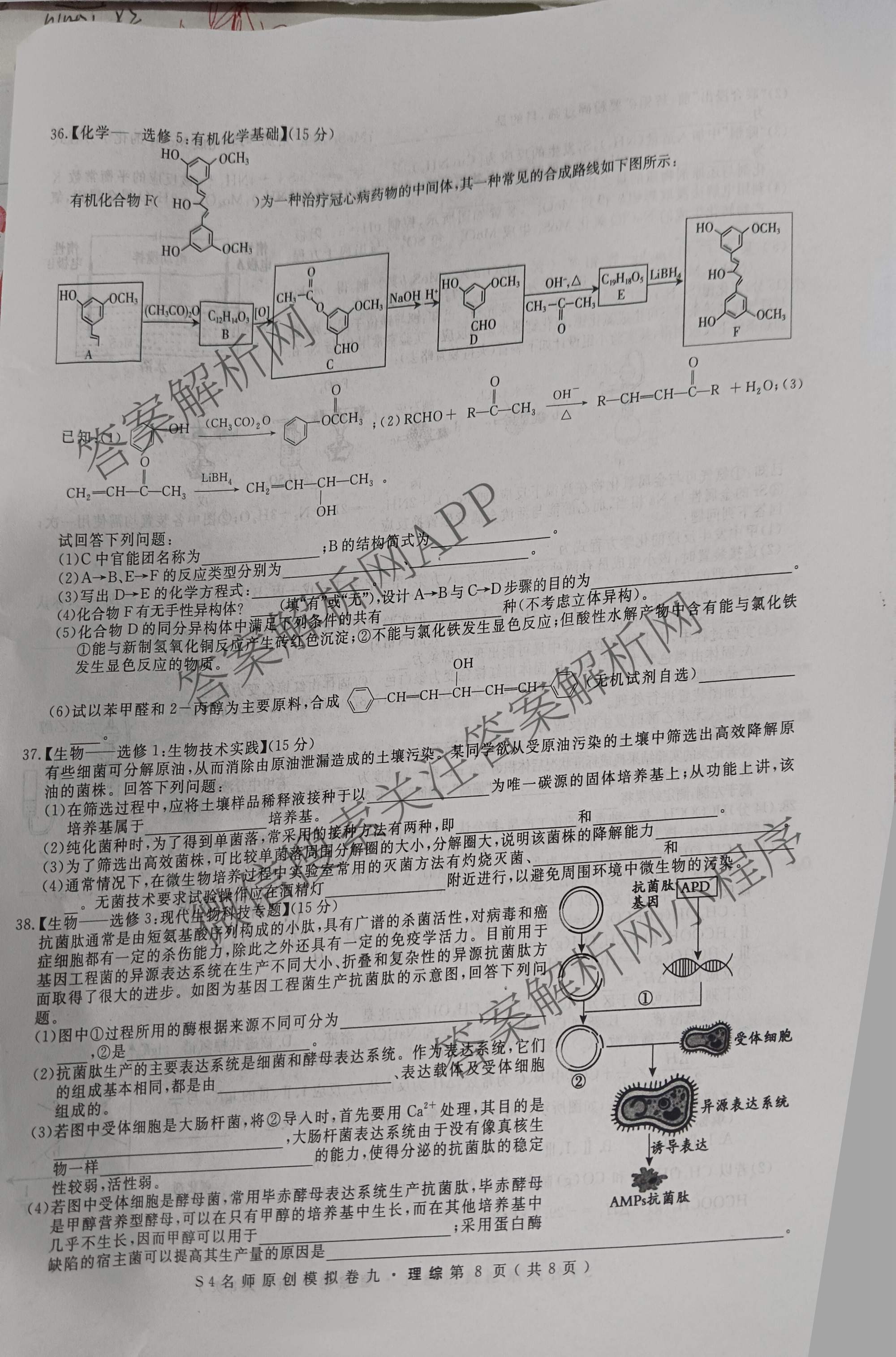 2024届高三总复习名师原创模拟卷 理综(S4)(九)9试题
