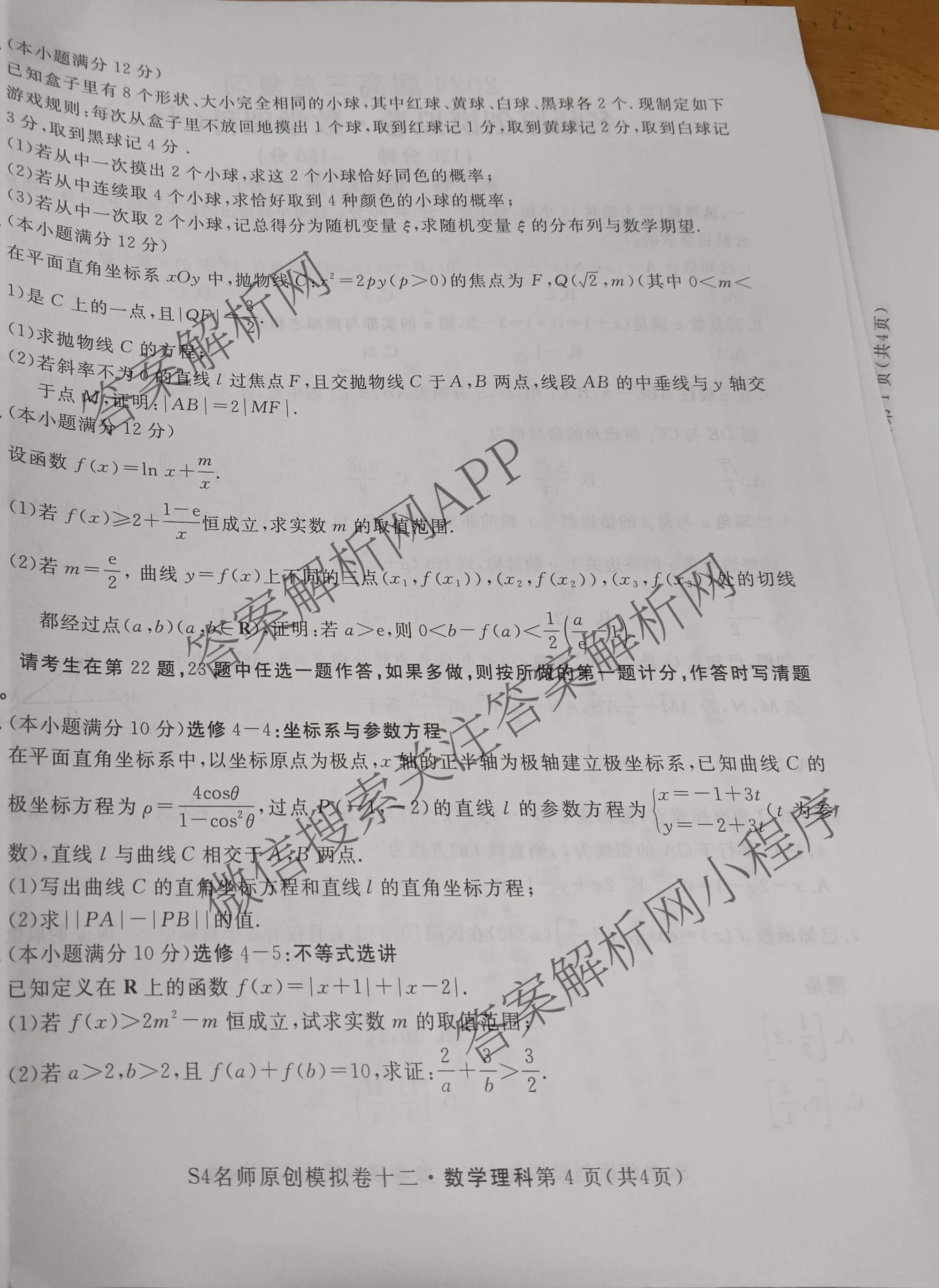 2024届高三总复习·名师原创模拟卷(十二)12理数(S4)试题,目前分科卷答案网已经汇总了2024届高三总复习·名师原创模拟卷(十二)12理数(S4)试题的各科答案和试卷,获取更多高三总复习·名师原创模拟答案解析,请在关注本站。