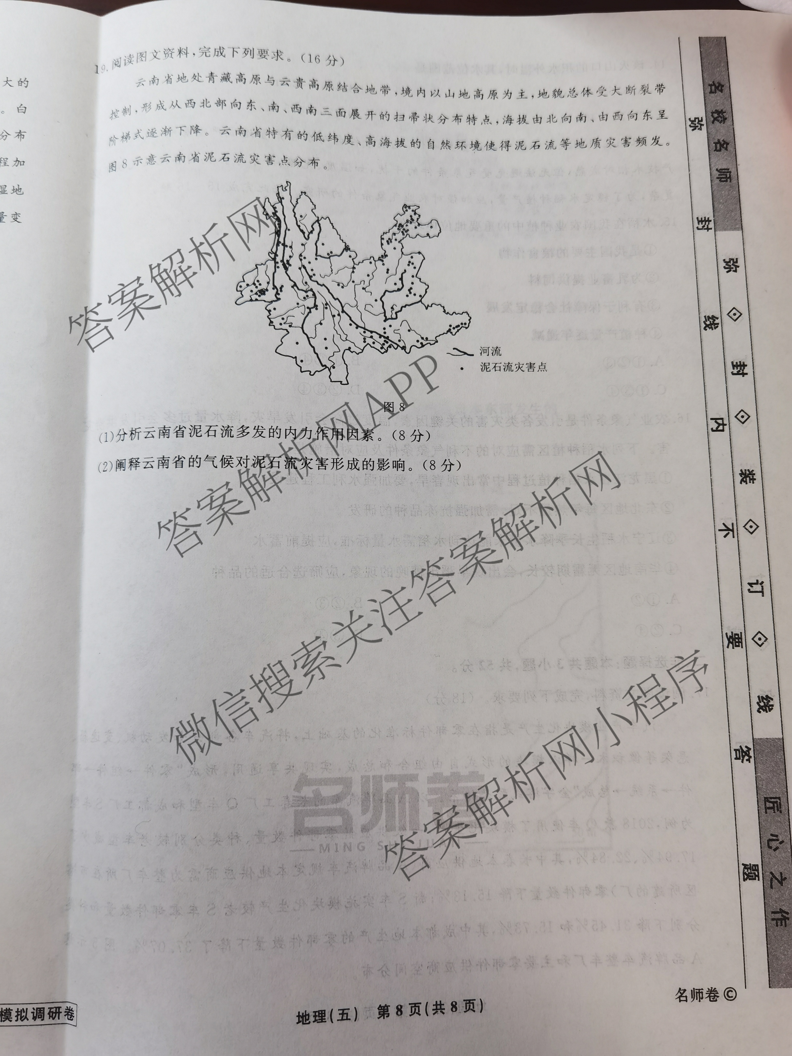 - [高三][衡水名师卷]高考模拟调研卷 2024年普通高等学校招生全国统一考试模拟试题 文综(实心◇)(五)5答案