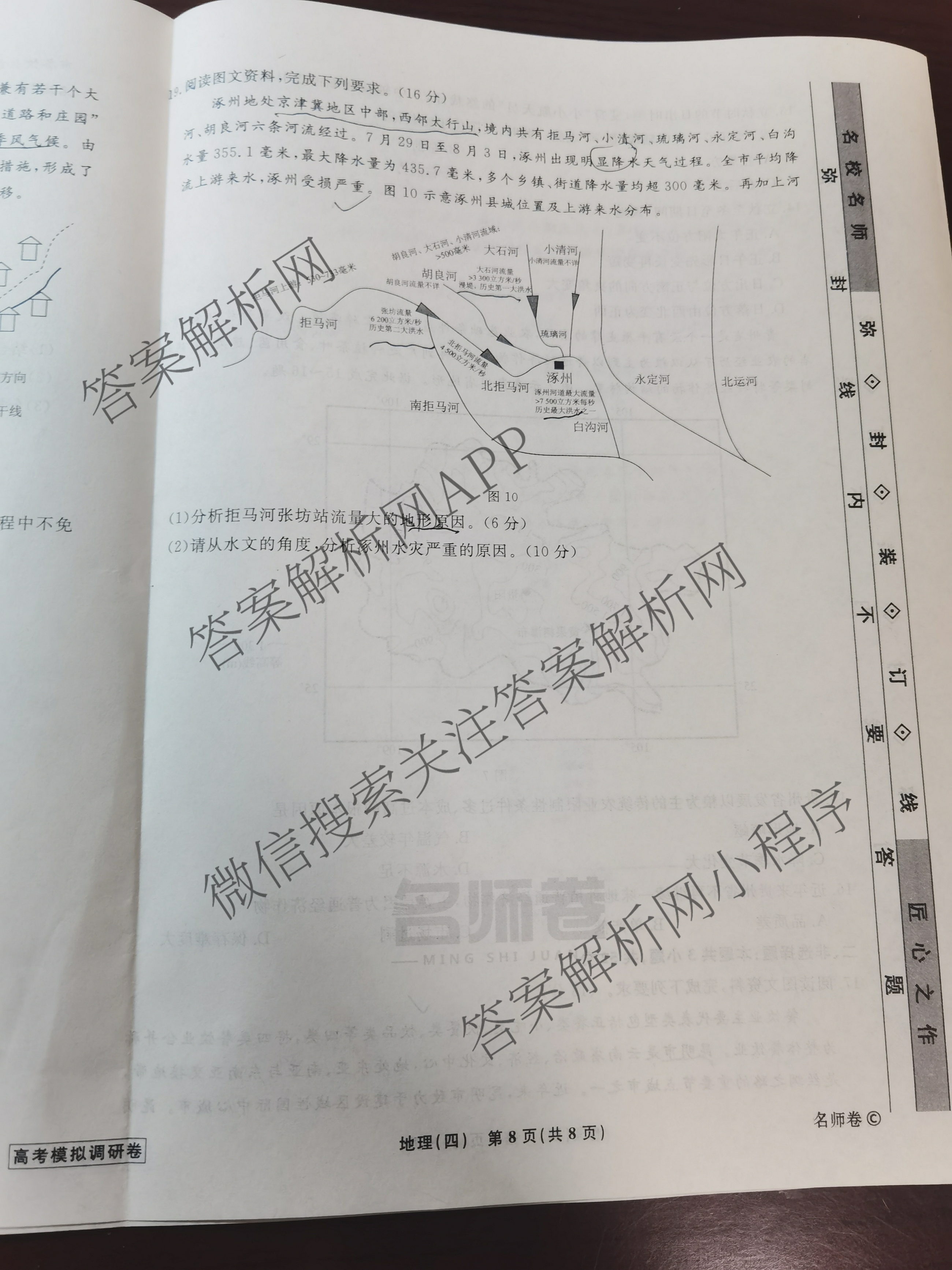 - [高三][衡水名师卷]高考模拟调研卷 2024年普通高中学业水平选择性考试模拟试题 地理(菱形圆点)(四)4答案