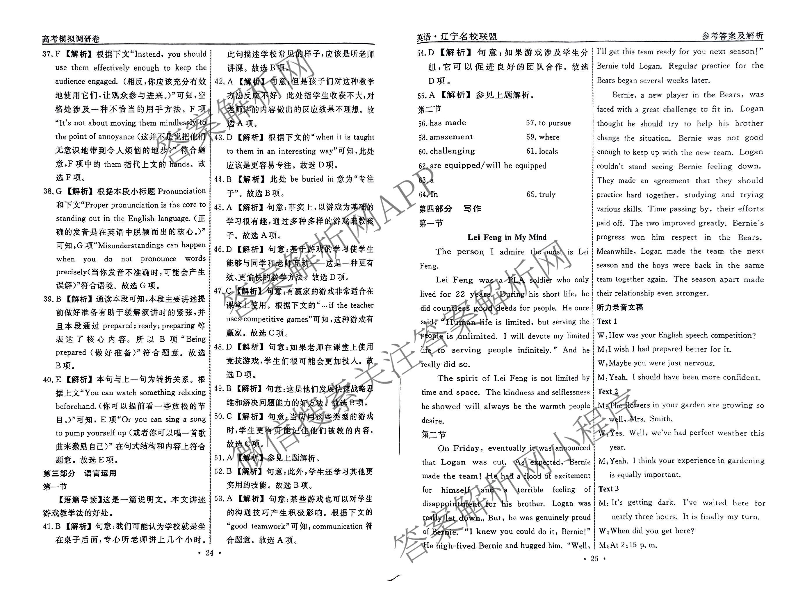 辽宁省名校联盟2024年高考模拟卷(调研卷)(五)5英语答案,目前分科卷答案网已经汇总了辽宁省名校联盟2024年高考模拟卷(调研卷)(五)5英语答案的各科答案和试卷,获取更多衡水名师卷答案解析,请在关注本站。