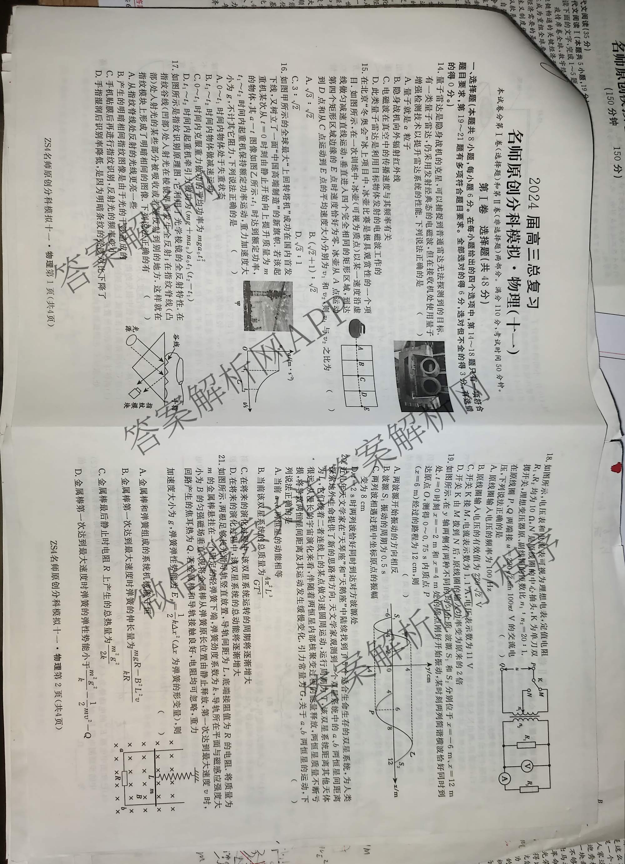 2024届高三总复习名师原创分科模拟(十一)11物理(ZS4)试题