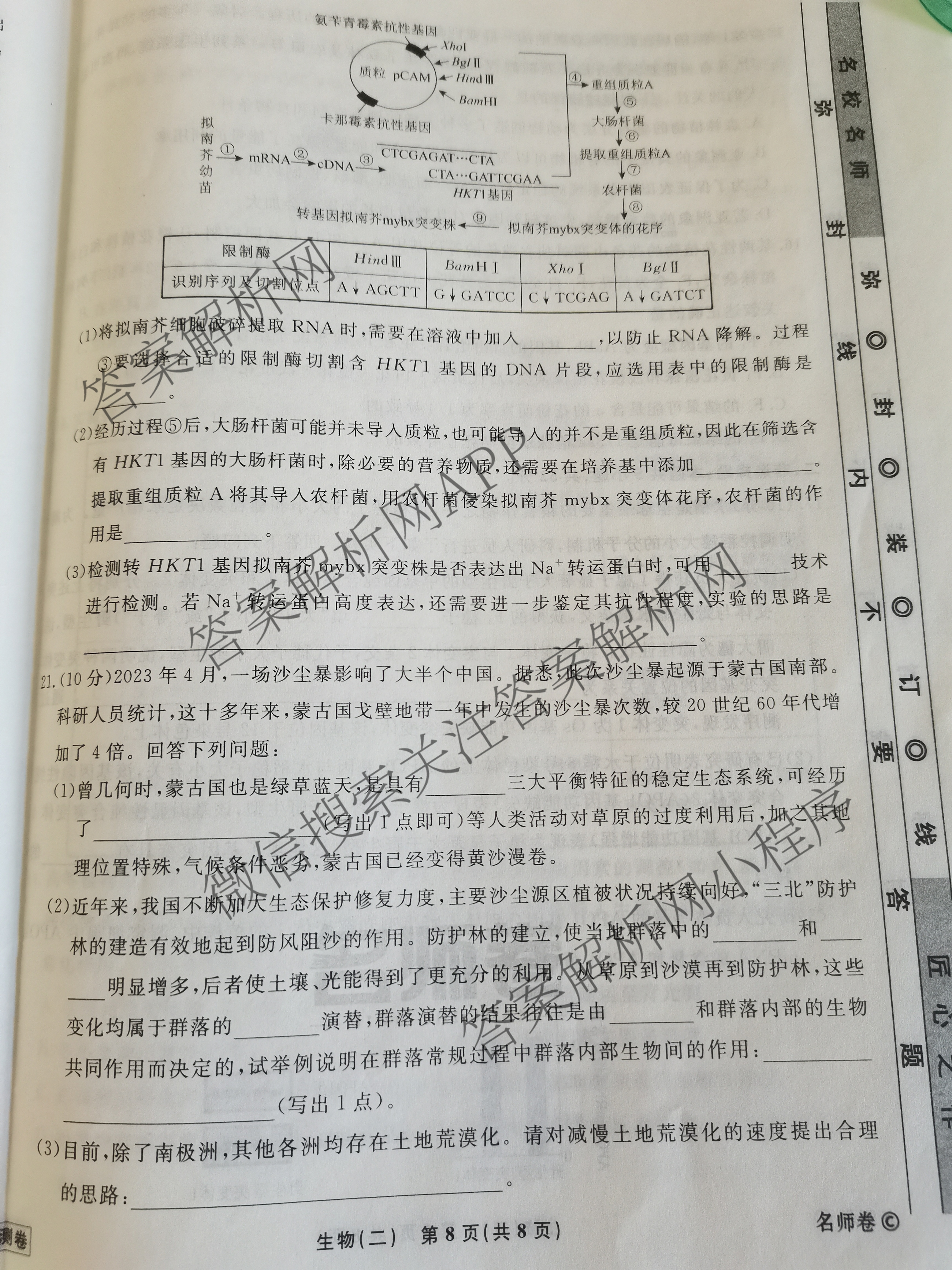 衡水名师卷·高考模拟检测卷 2024年普通高中学业水平选择性考试模拟试题 生物(双圆形)(二)2试题,目前分科卷答案网已经汇总了衡水名师卷·高考模拟检测卷 2024年普通高中学业水平选择性考试模拟试题 生物(双圆形)(二)2试题的各科答案和试卷,获取更多衡水名师卷答案解析,请在关注本站。