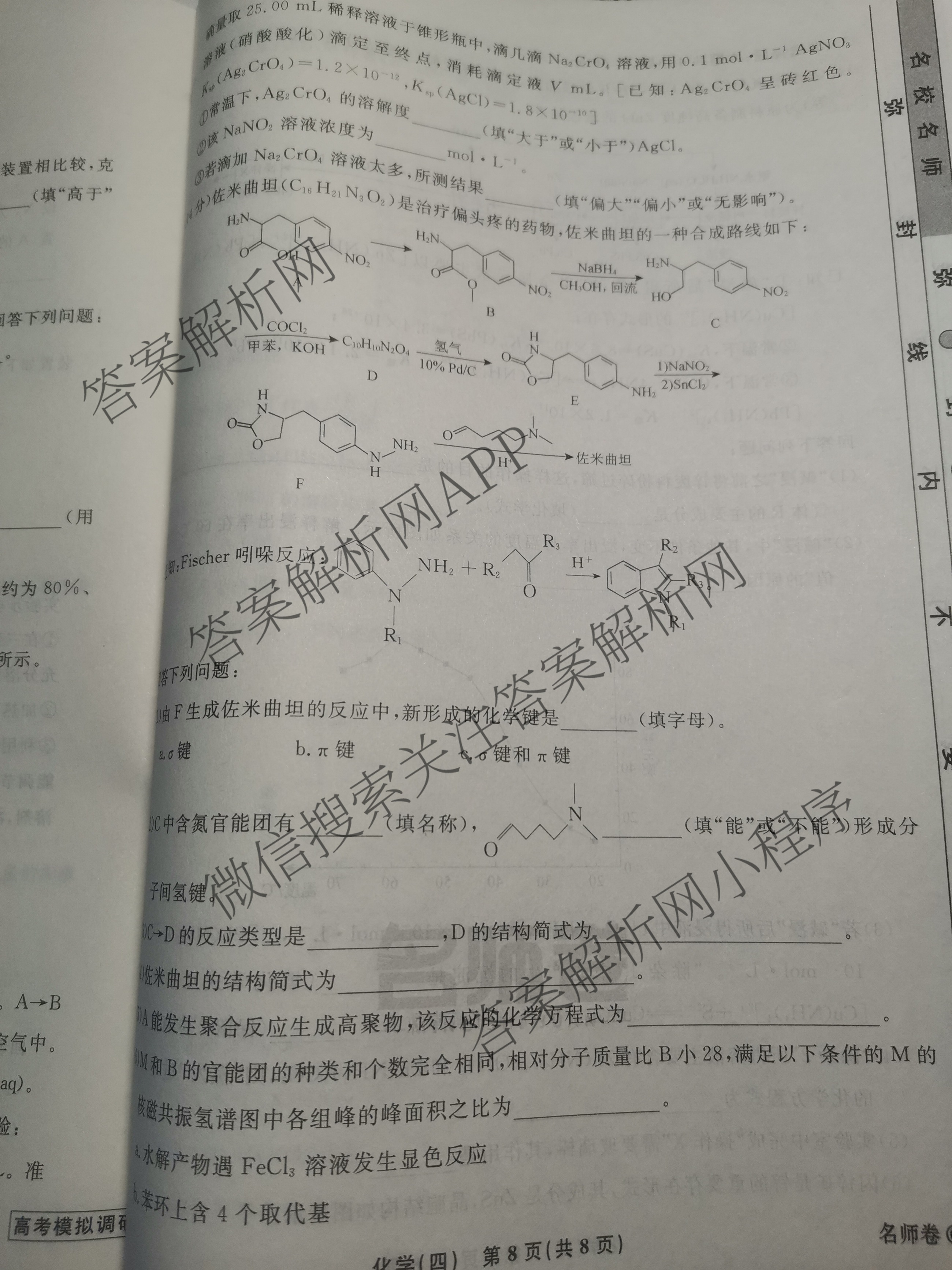 - [高三][衡水名师卷]高考模拟调研卷 2024年普通高中学业水平选择性考试模拟试题 化学(双菱形)(四)4答案