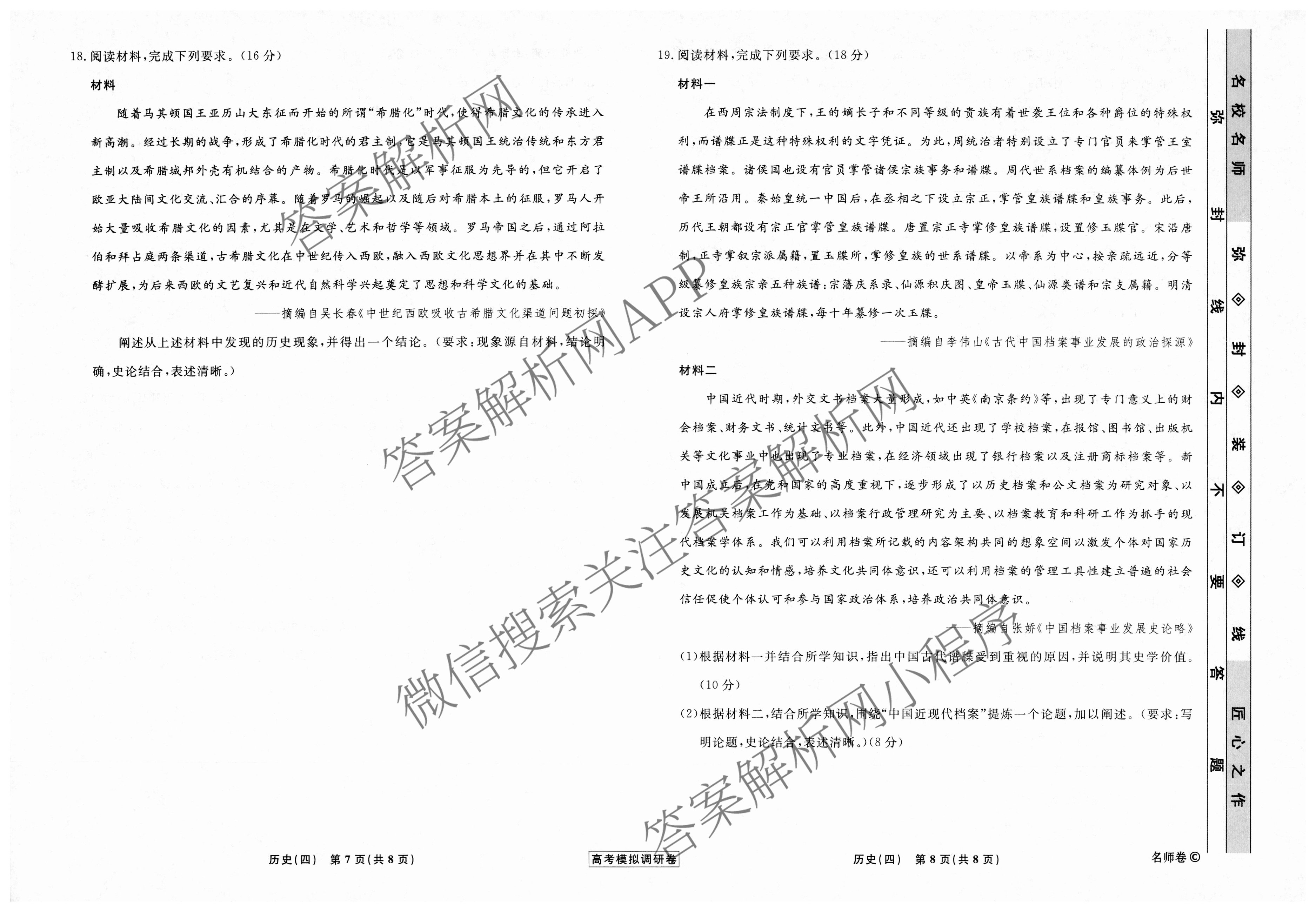 - [衡水名师卷]高考模拟调研卷 2024年普通高中学业水平选择性考试模拟试题 历史(双菱形)(四)4答案
