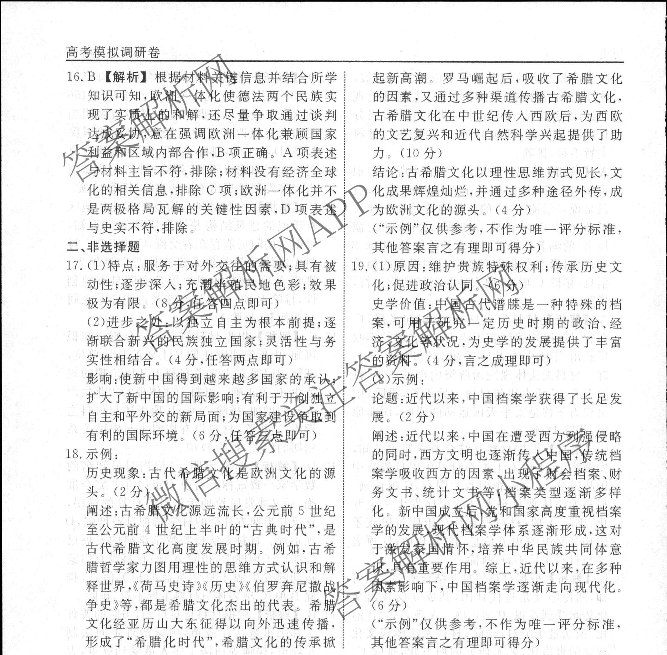 - [衡水名师卷]高考模拟调研卷 2024年普通高中学业水平选择性考试模拟试题 历史(双菱形)(四)4答案