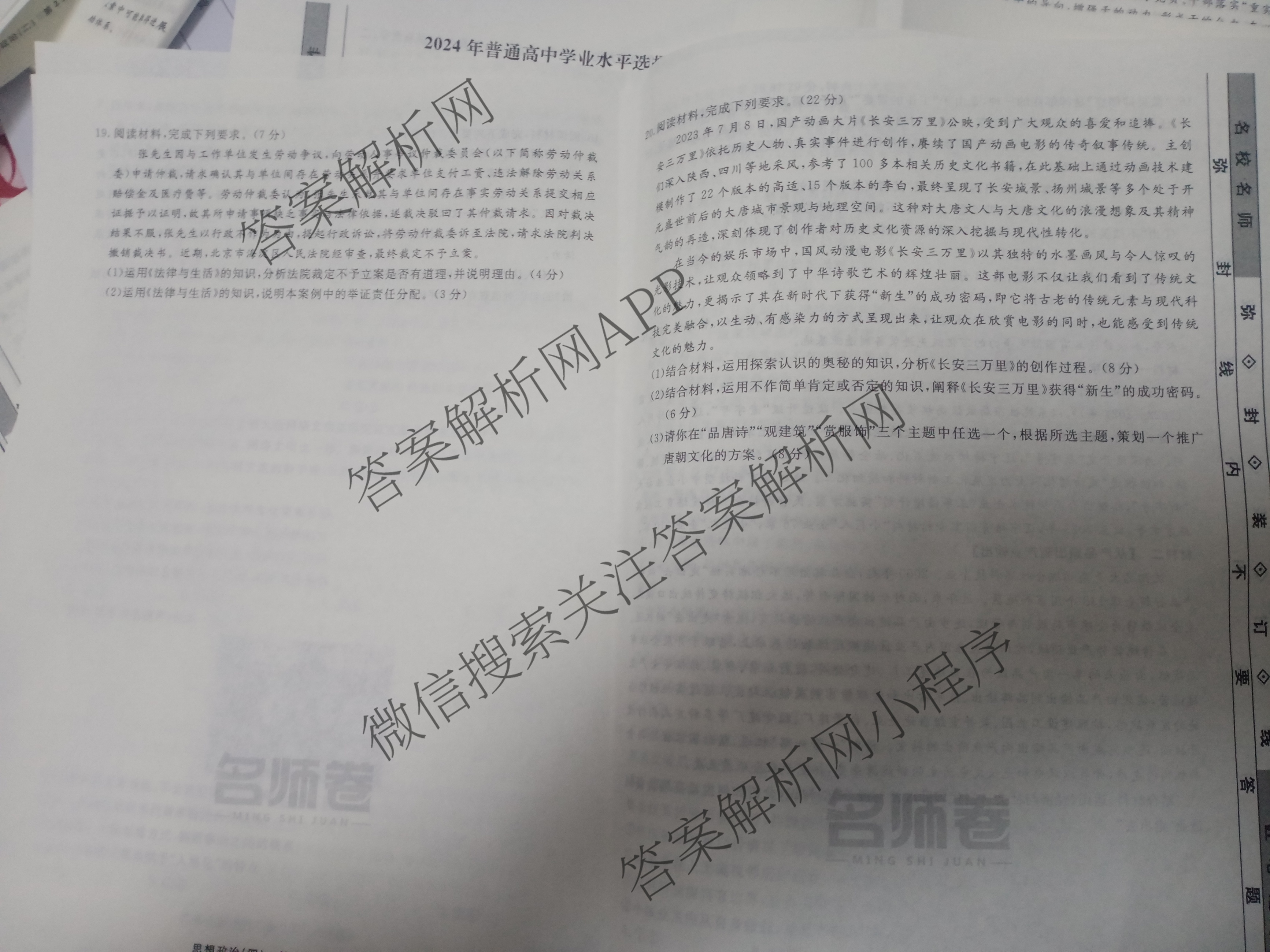 - (衡水名师卷)·高考模拟调研卷2024年普通高中学业水平选择性考试模拟试题 政治(实心○)(四)4答案
