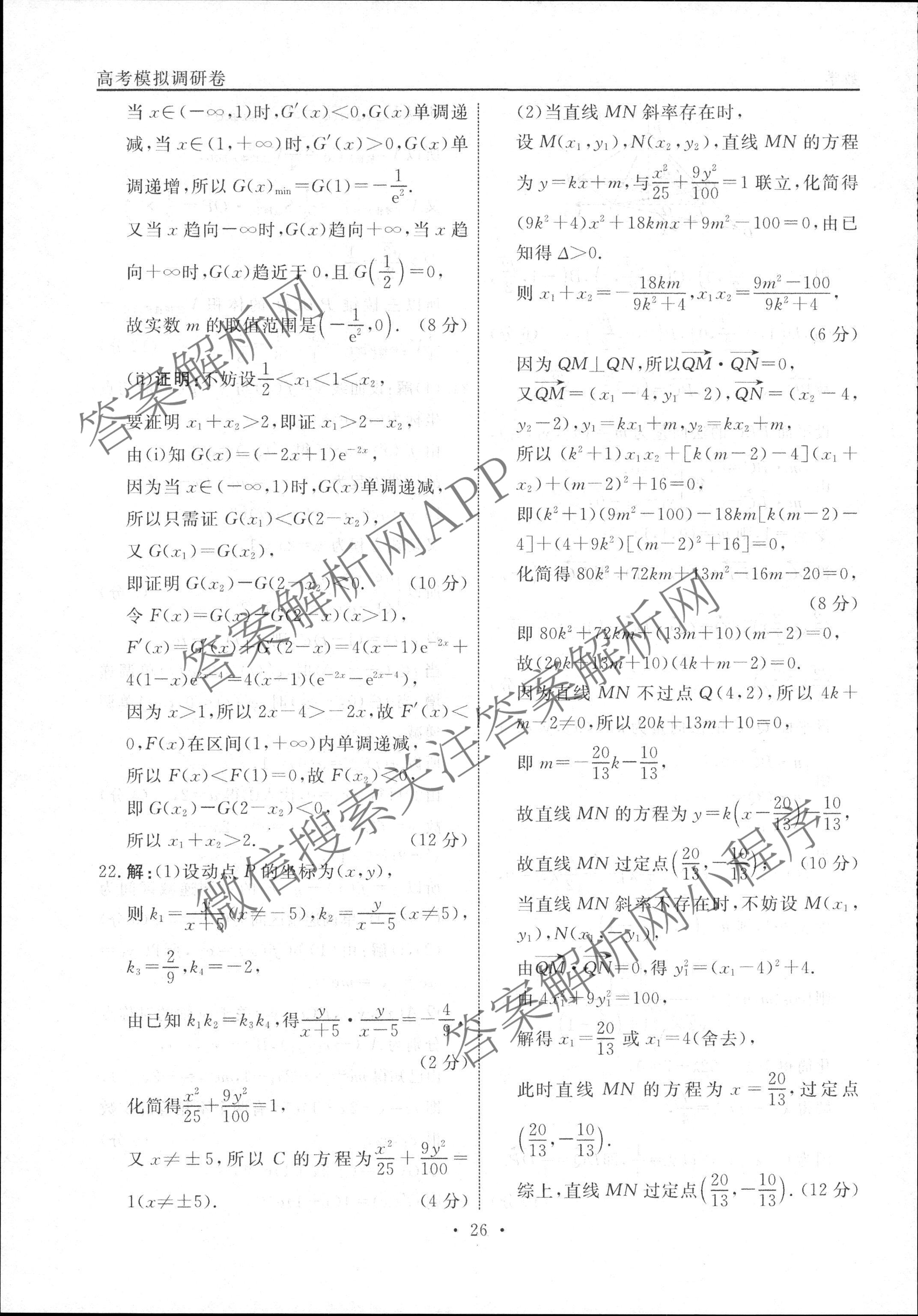 - [高三]衡水名师卷·高考模拟调研卷2024年普通高等学校招生全国统一考试模拟试题 数学(双◇)(四)答案