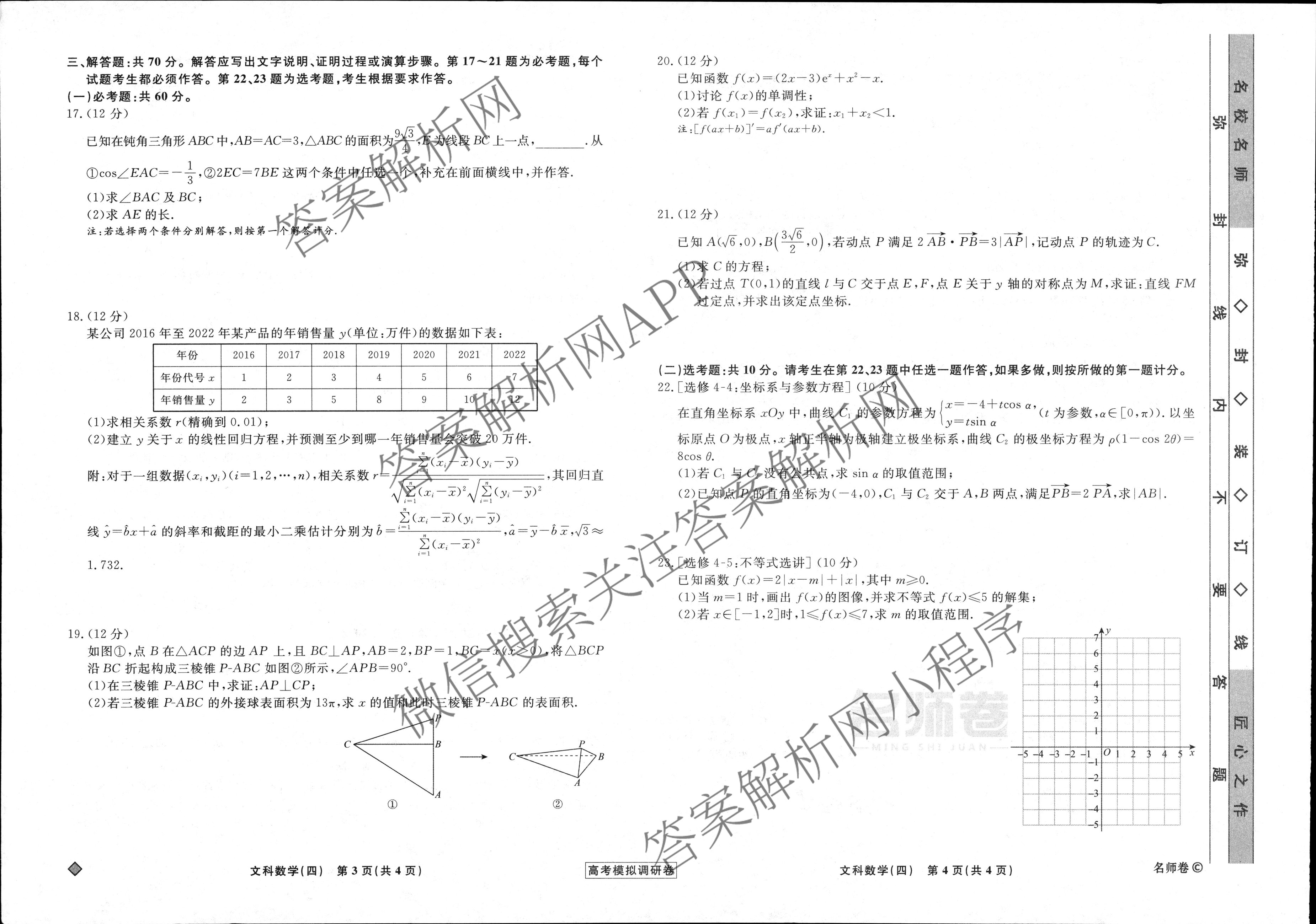 - (高三)(衡水名师卷)高考模拟调研卷 2024年普通高等学校招生全国统一考试模拟试题 文数(实心◇)(四)4答案