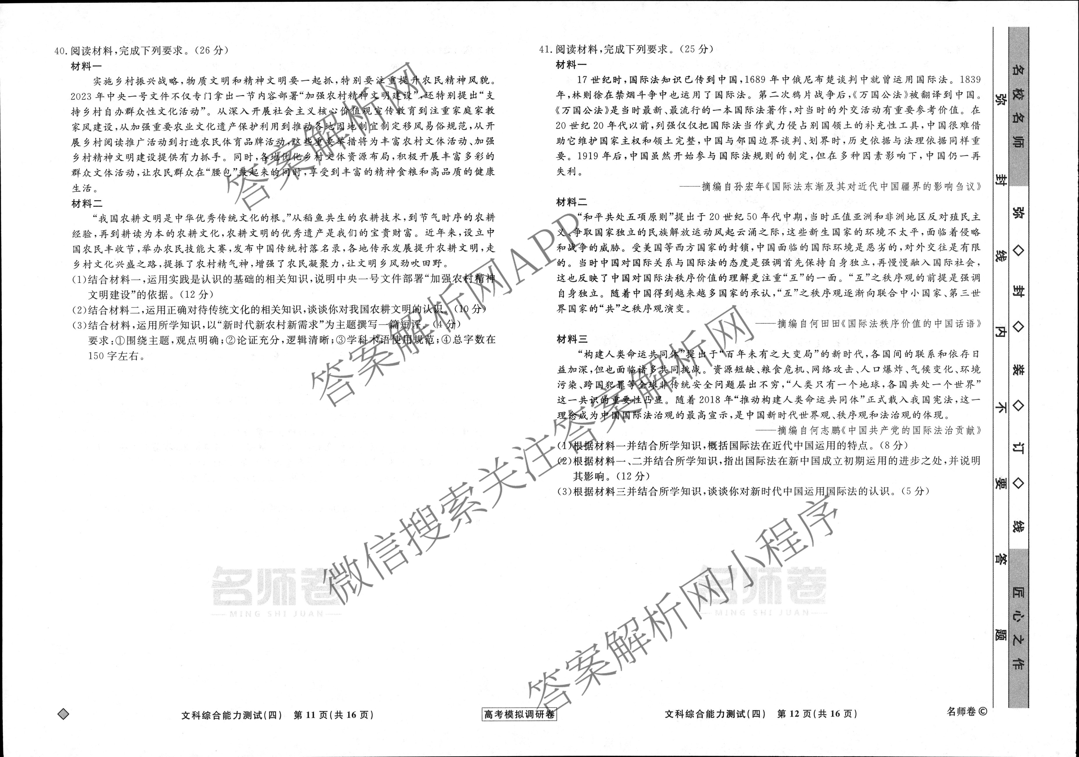 - [高三]衡水名师卷高考模拟调研卷 2024年普通高等学校招生全国统一考试模拟试题 文综(实心◇)(四)4答案