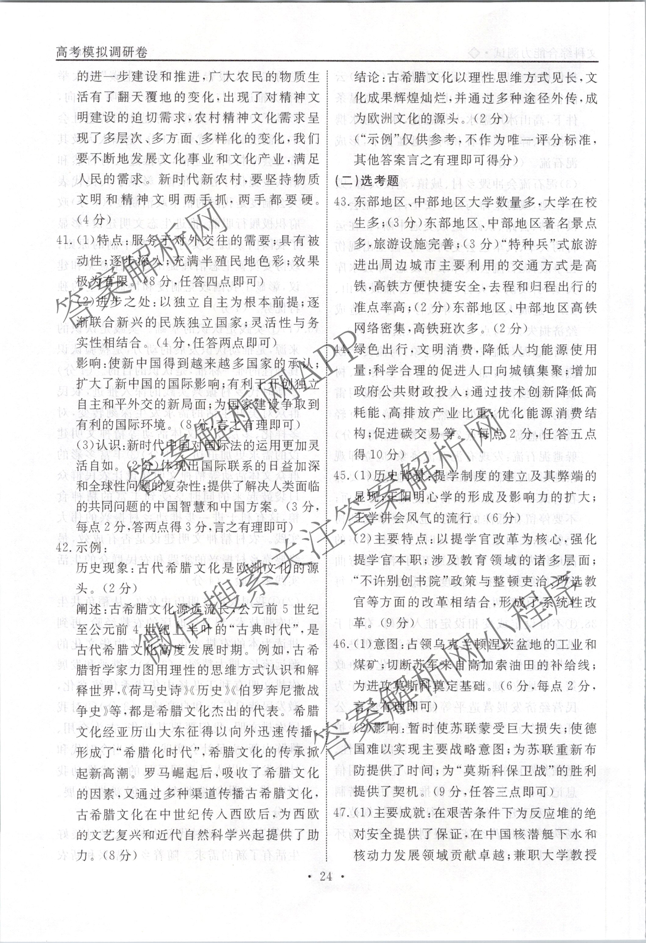 [高三]衡水名师卷高考模拟调研卷 2024年普通高等学校招生全国统一考试模拟试题 文综(实心◇)(四)4答案