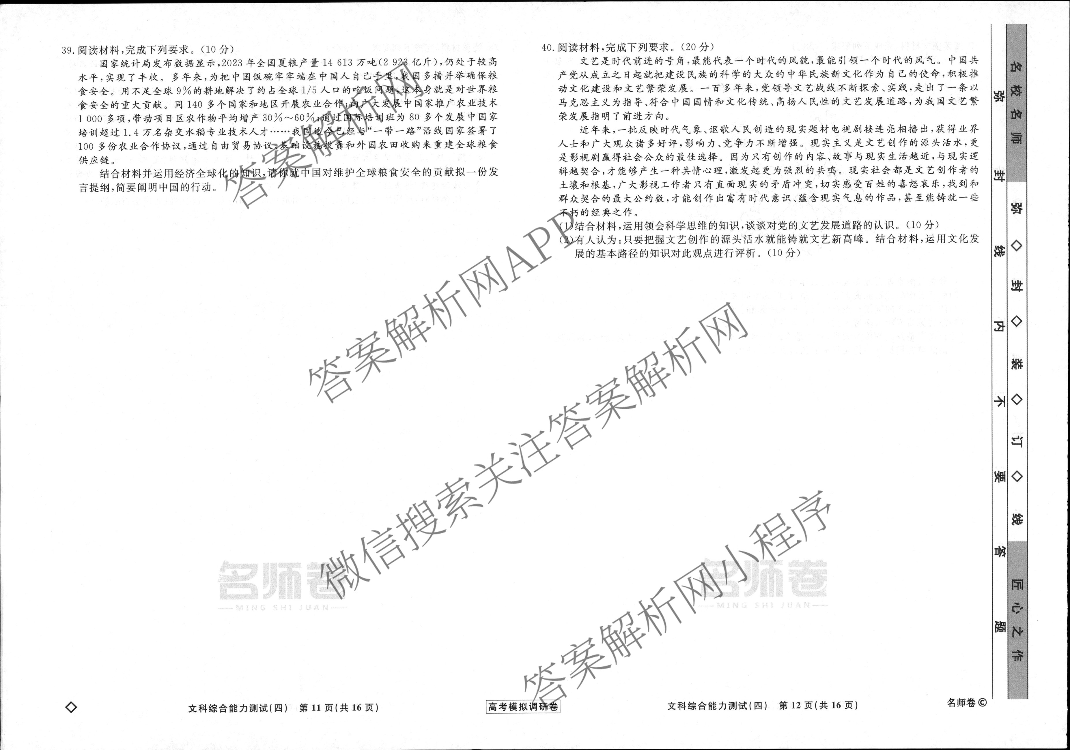 - [高三]衡水名师卷高考模拟调研卷 2024年普通高等学校招生全国统一考试模拟试题 文综(实心◇)(四)4答案