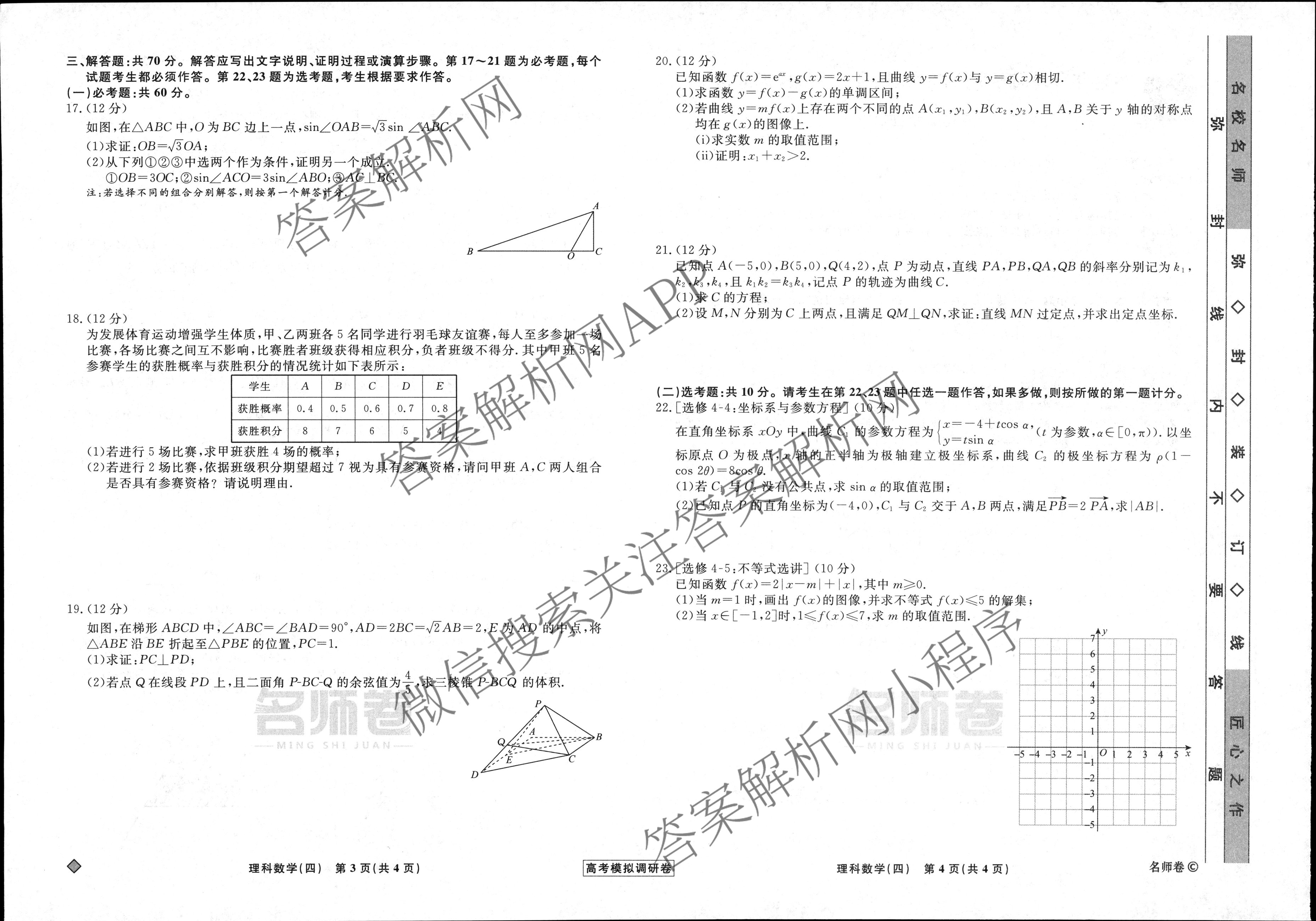 - (高三)(衡水名师卷)高考模拟调研卷 2024年普通高等学校招生全国统一考试模拟试题 文数(实心◇)(四)4答案