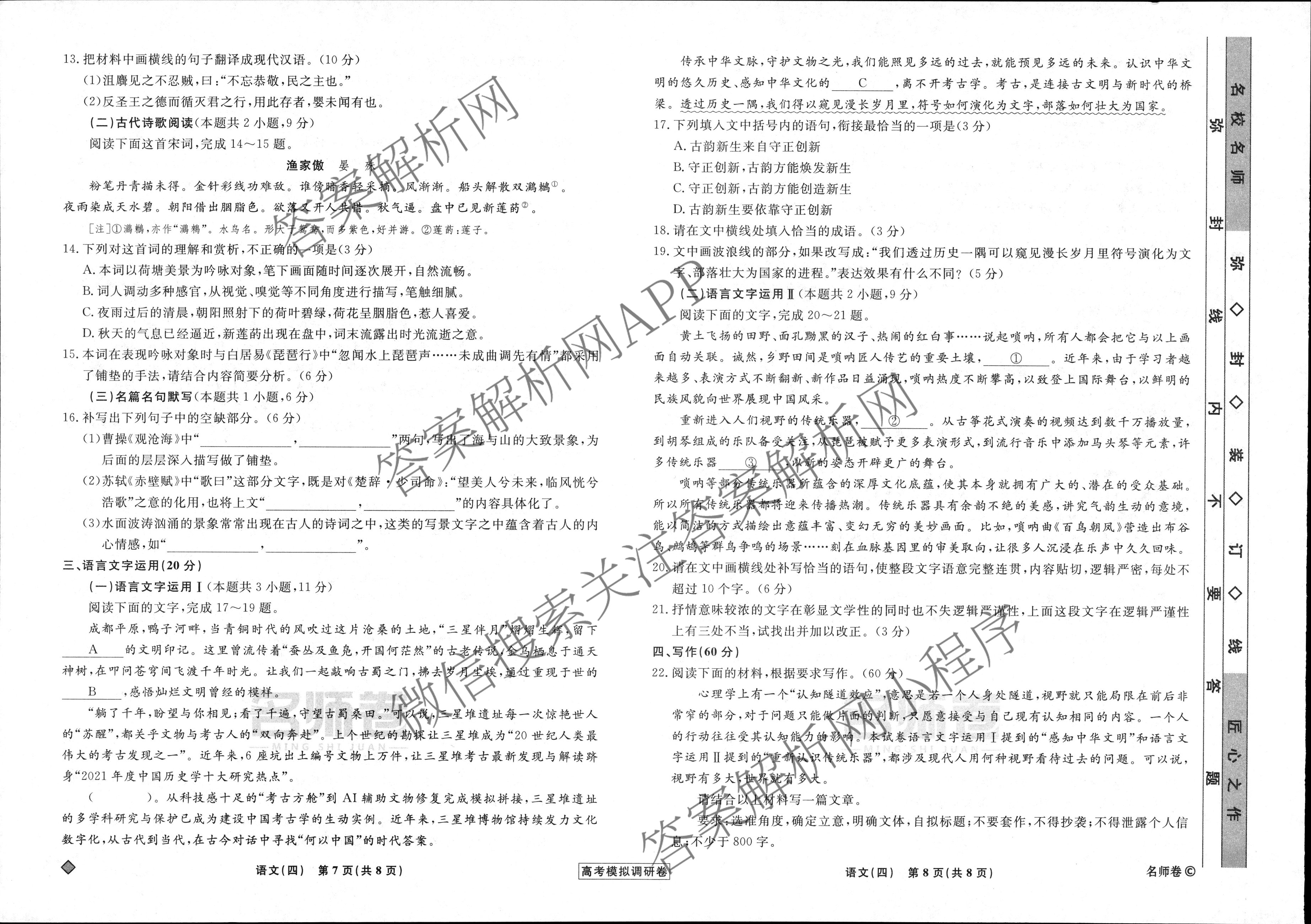 [高三](衡水名师卷)·高考模拟调研卷2024年普通高等学校招生全国统一考试模拟试题 语文(实心◇)(四)4试题