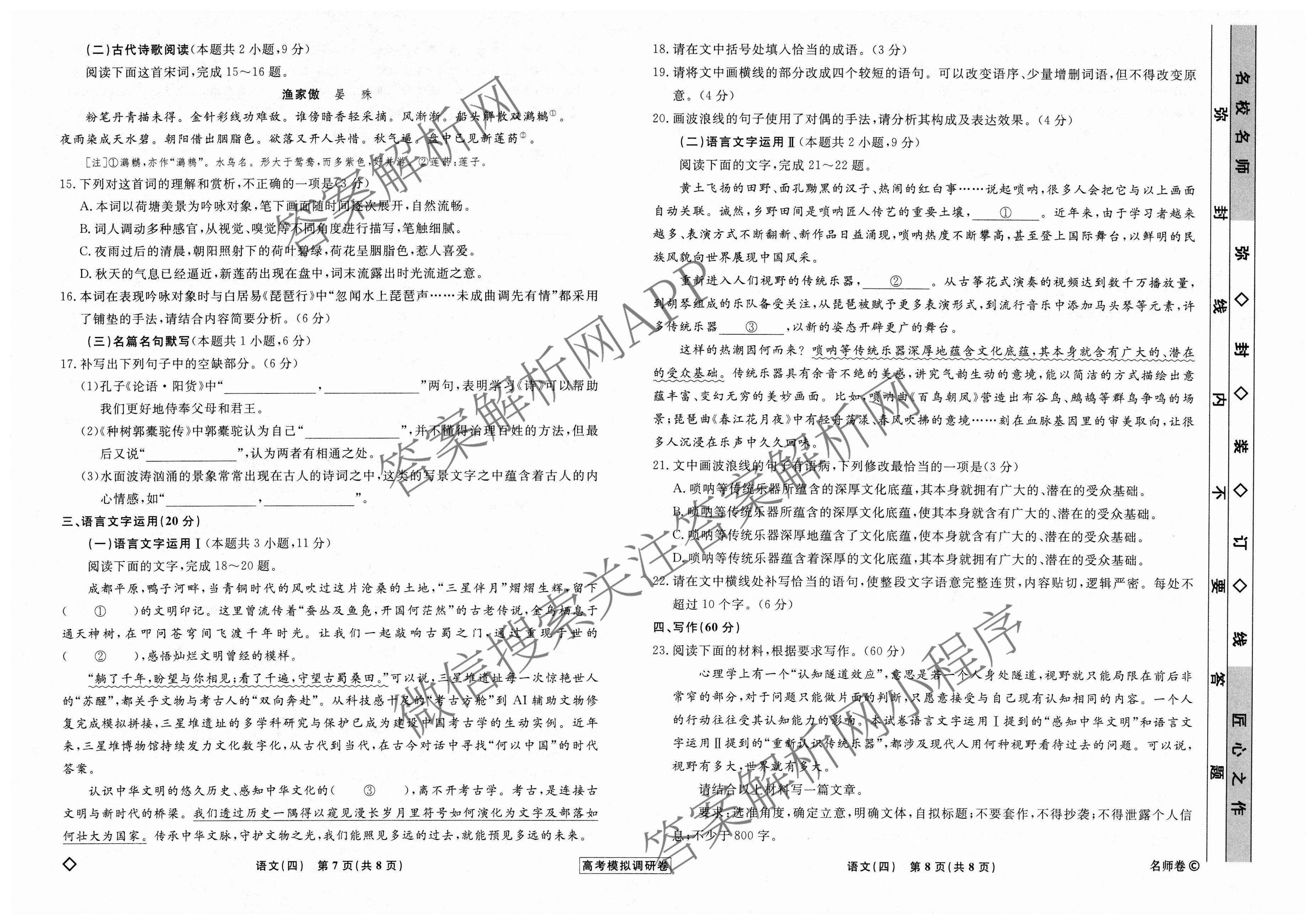 - [高三](衡水名师卷)·高考模拟调研卷2024年普通高等学校招生全国统一考试模拟试题 语文(实心◇)(四)4试题