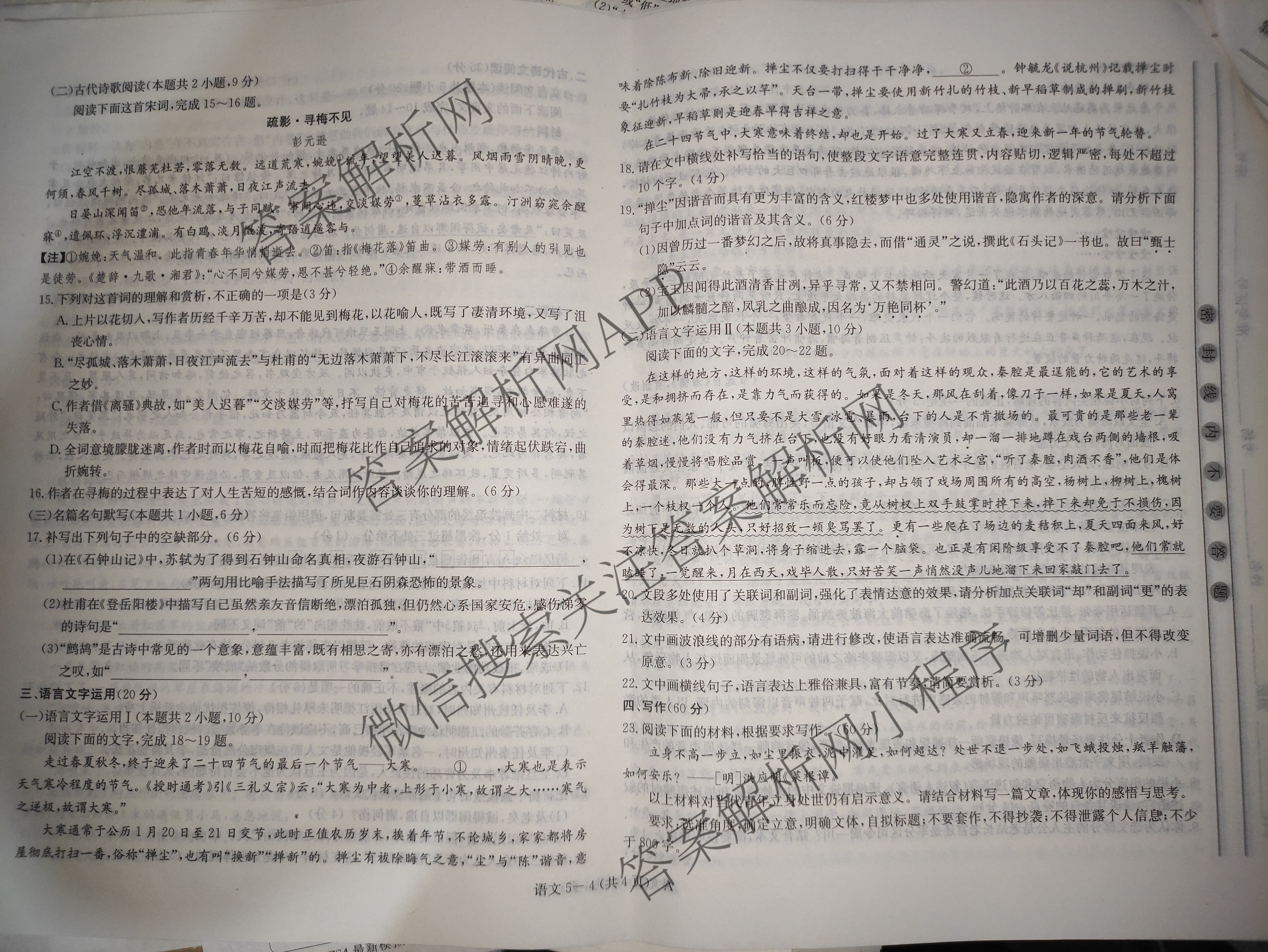 - (高三)2024届(高考信息检测卷)(全国卷) 语文(五)5试题