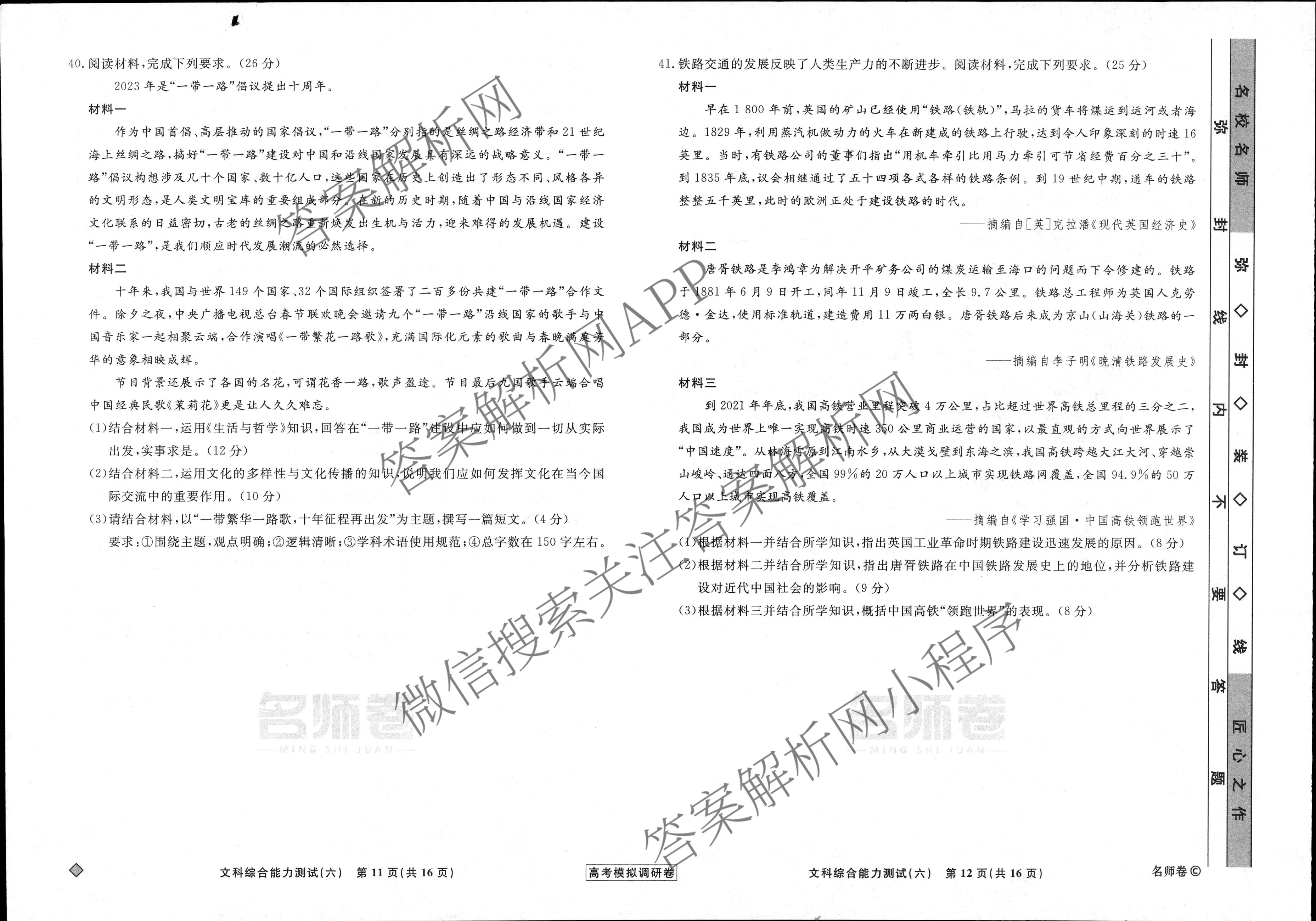 - (衡水名师卷)高考模拟调研卷 2024年普通高等学校招生全国统一考试模拟试题 文综(实心◇)(六)6答案