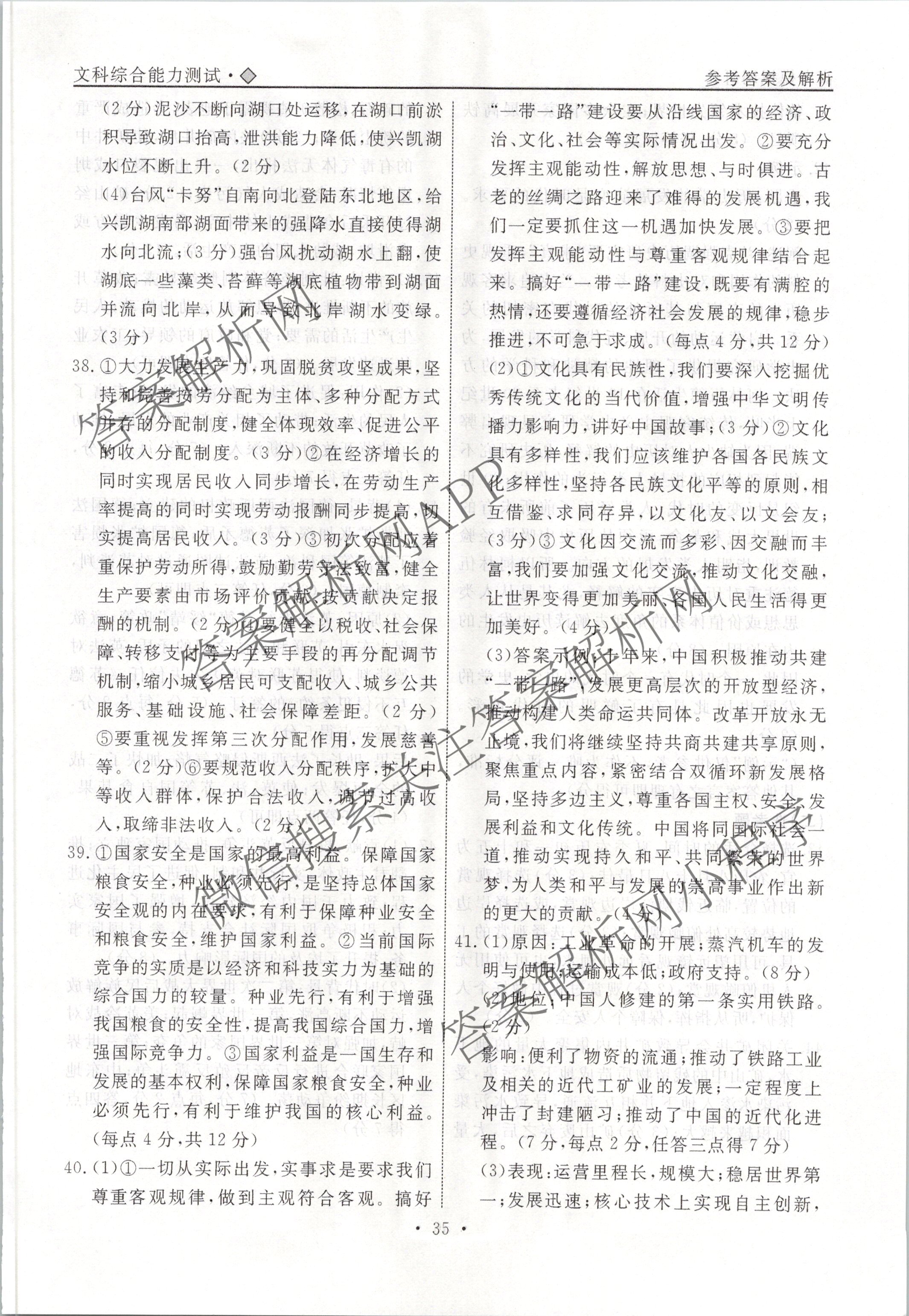 (衡水名师卷)高考模拟调研卷 2024年普通高等学校招生全国统一考试模拟试题 文综(实心◇)(六)6答案